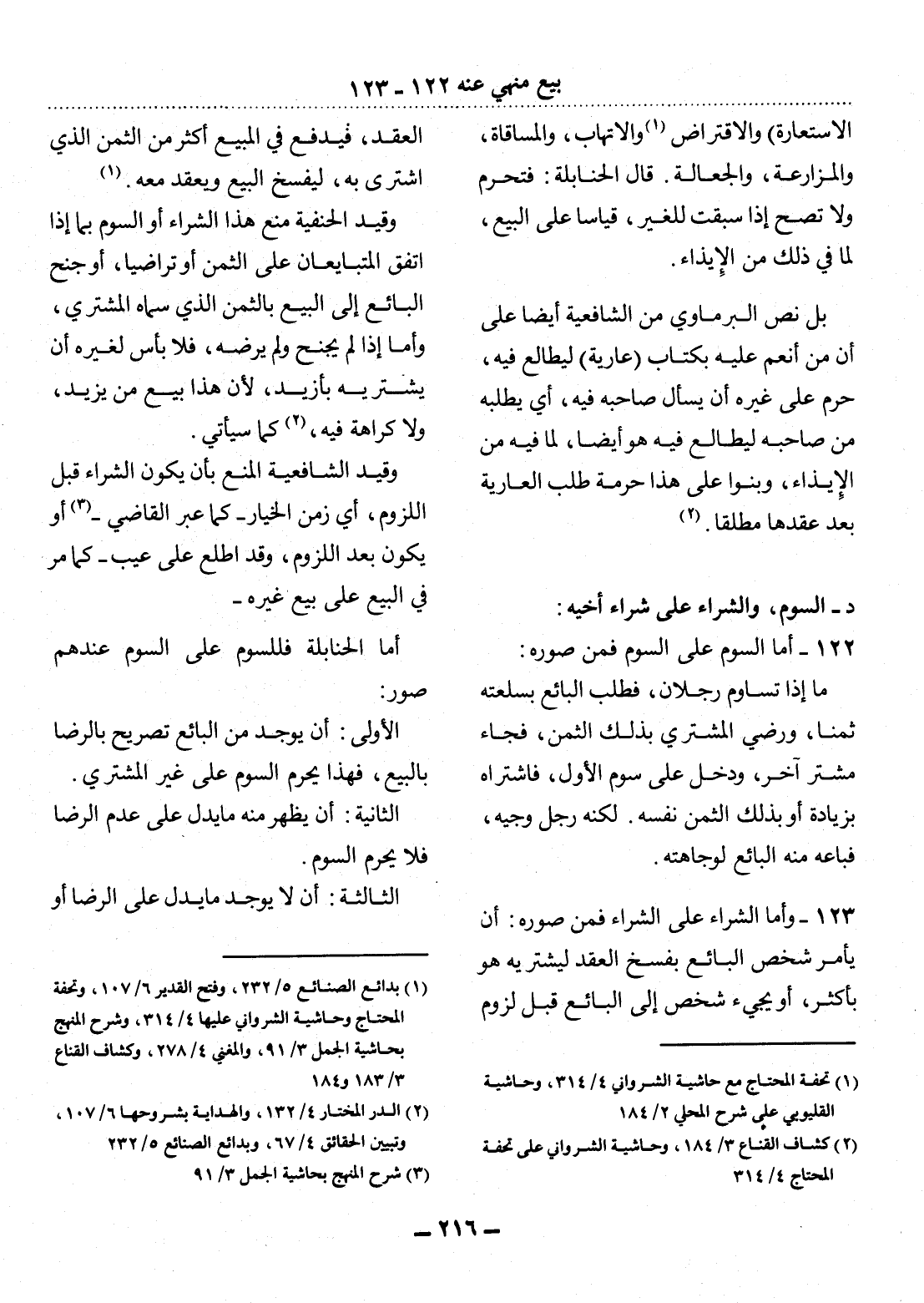 122 - أَمَّا السَّوْمُ عَلَى السَّوْمِ فَمِنْ صُوَرِهِ:
