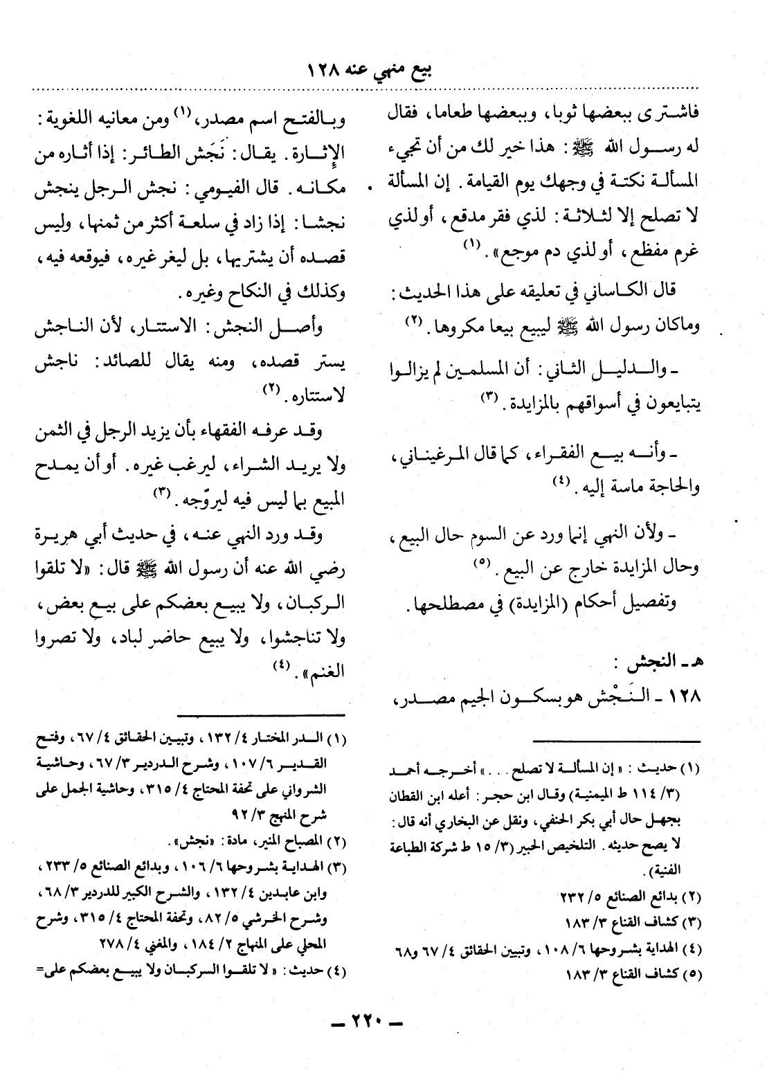 128 - النَّجْشُ هُوَ بِسُكُونِ الْجِيمِ مَصْدَرٌ،