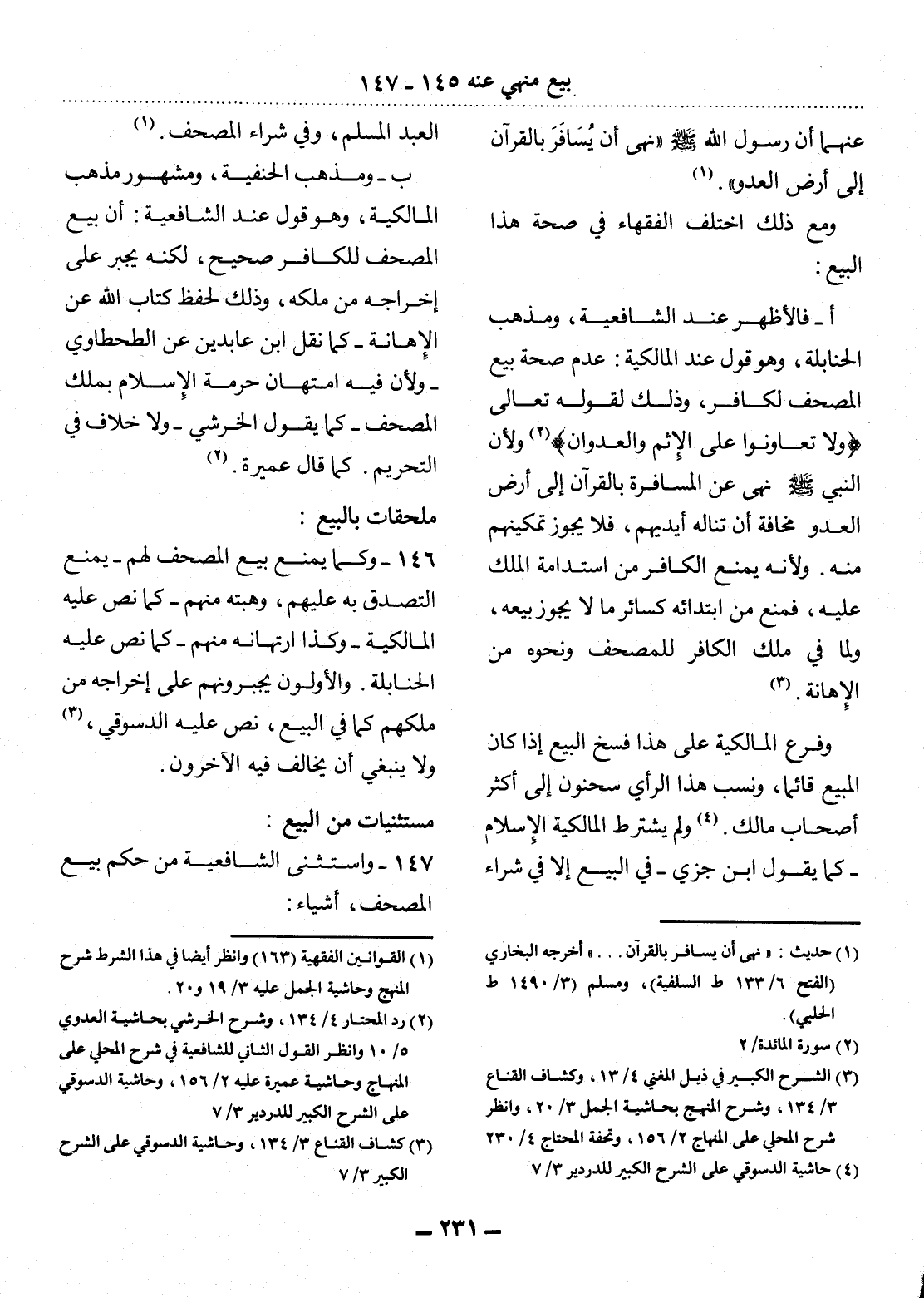 (1) حديث: " نهى أن يسافر بالقرآن. . . " أخرجه البخاري (الفتح 6 / 133 ط السلفية) ، ومسلم (3 / 1490) ط الحلبي) .