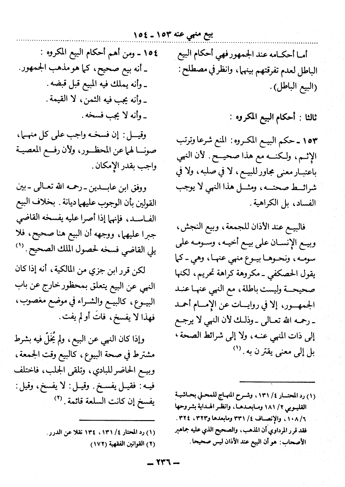 154 - وَمِنْ أَهَمِّ أَحْكَامِ الْبَيْعِ الْمَكْرُوهِ: