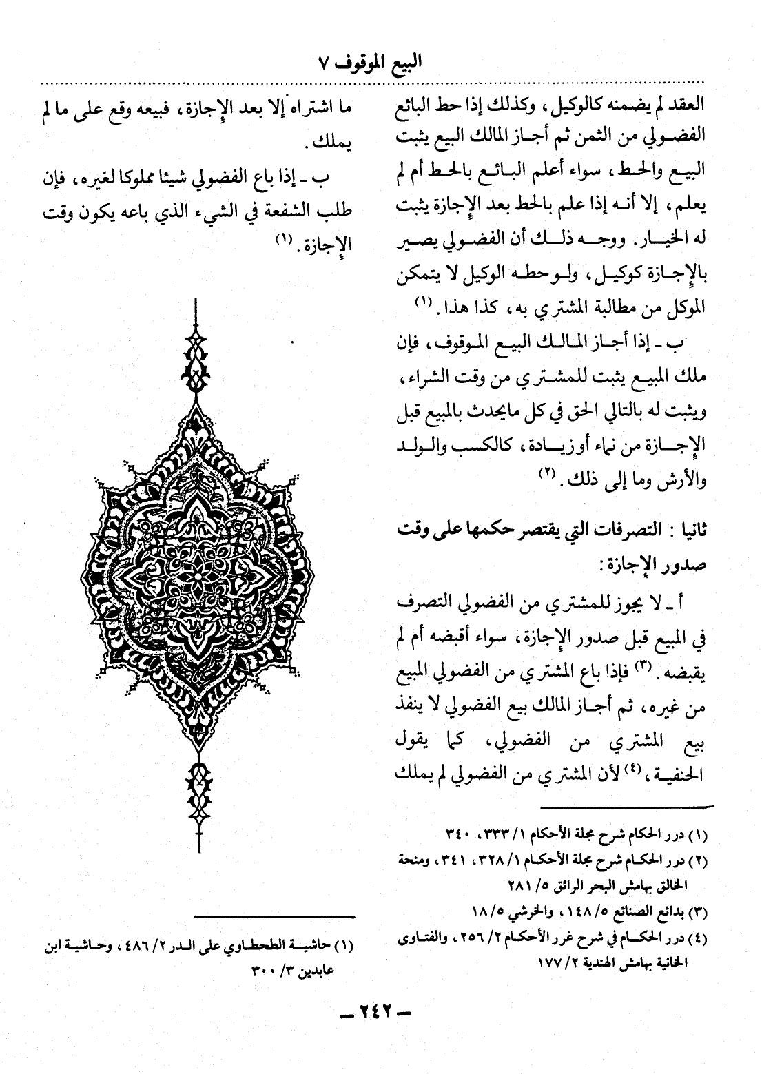 (2) درر الحكام شرح مجلة الأحكام 1 / 328، 341، ومنحة الخالق بهامش البحر الرائق 5 / 281.