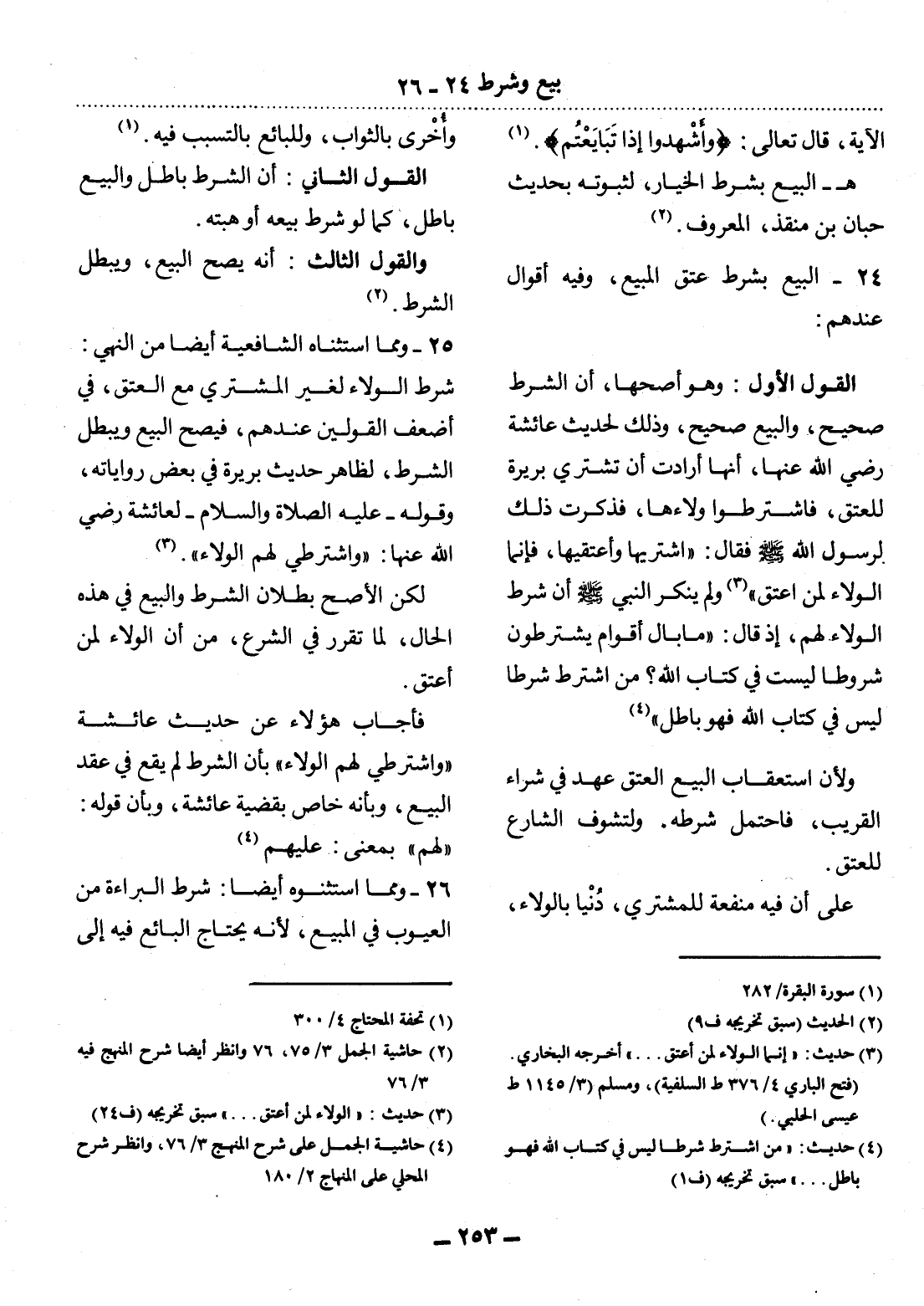 24 - الْبَيْعُ بِشَرْطِ عِتْقِ الْمَبِيعِ، وَفِيهِ أَقْوَالٌ عِنْدَ