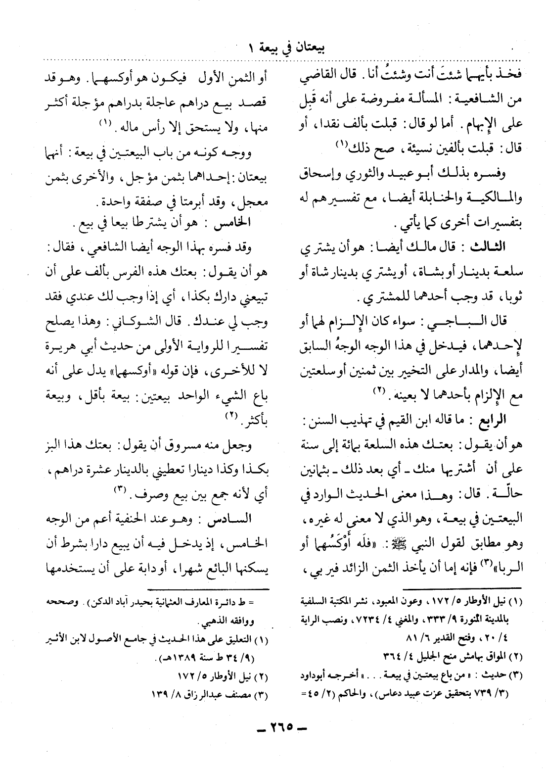 (3) حديث: " من باع بيعتين في بيعة. . . " أخرجه أبو داود (3 / 739 بتحقيق عزت عبيد دعاس) ، والحاكم (2 / 45 ط دائرة المعارف العثمانية بحيدر آباد الدكن) . وصححه ووافقه الذهبي.