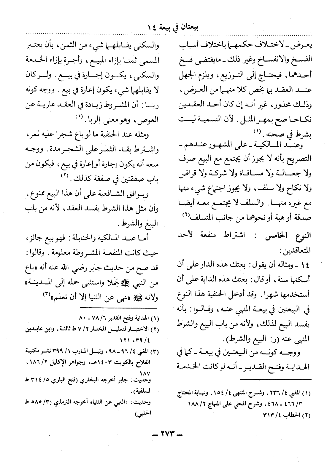 (3) المغني 4 / 96 - 98، ونيل المآرب 1 / 399 نشر مكتبة الفلاح بالكويت 1403 هـ، وجواهر الإكليل 2 / 186، 187. وحديث جابر أخرجه البخاري (فتح الباري 5 / 314 ط السلفية) . وحديث. " النهي عن الثنيا " أخرجه الترمذي (3 / 585 ط الحلبي) .