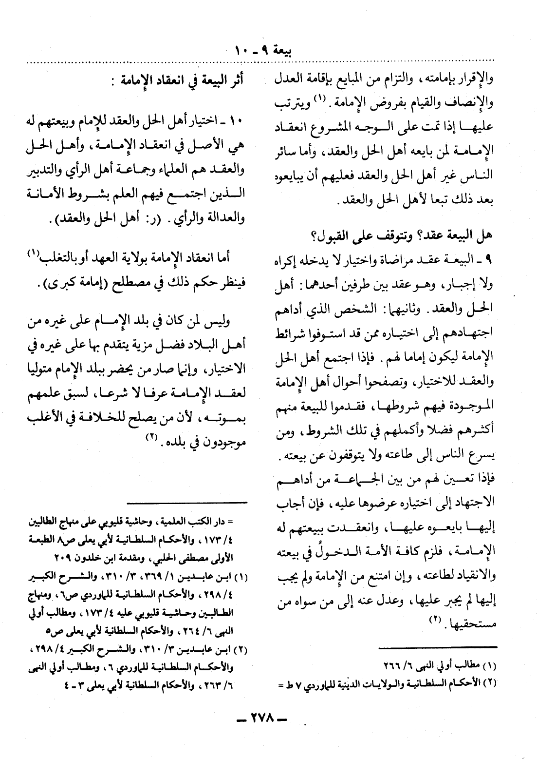 (2) الأحكام السلطانية والولايات الدينية للماوردي 7 ط دار الكتب العلمية، وحاشية قليوبي على منهاج الطالبين 4 / 173، والأحكام السلطانية لأبي يعلى ص 8 الطبعة الأولى مصطفى الحلبي، ومقدمة ابن خلدون 209.