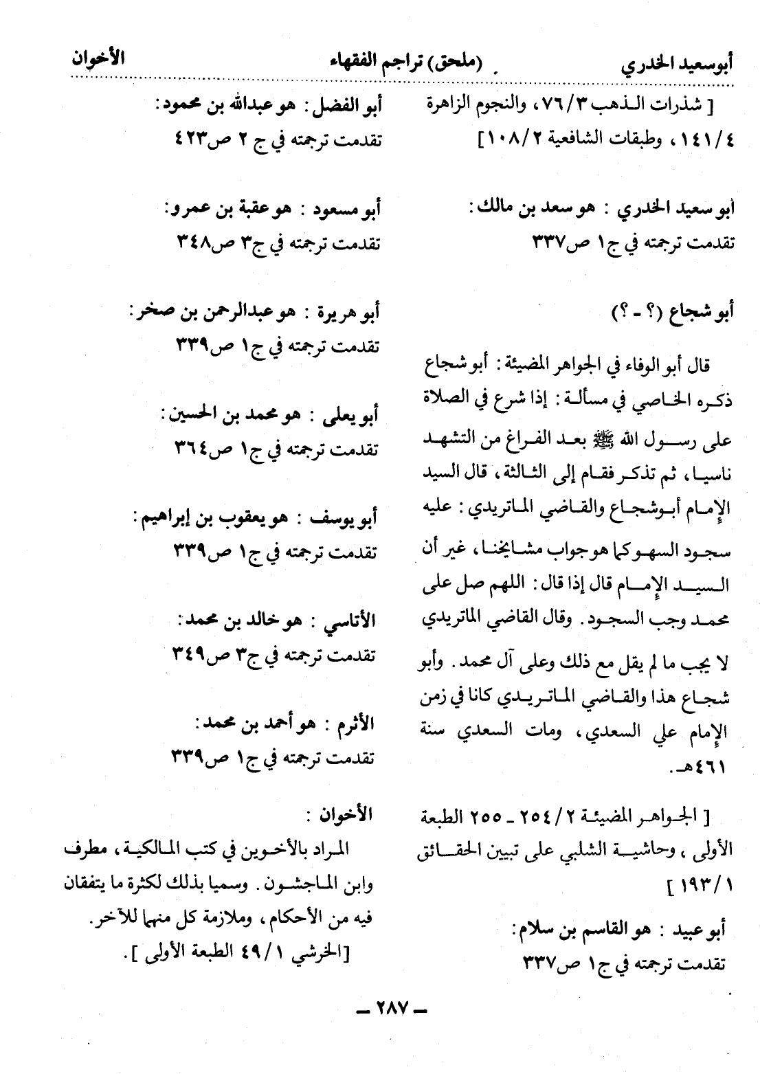 [الجواهر المضيئة 2 / 254 - 255 الطبعة الأولى، وحاشية الشلبي على تبيين الحقائق 1 / 193] .