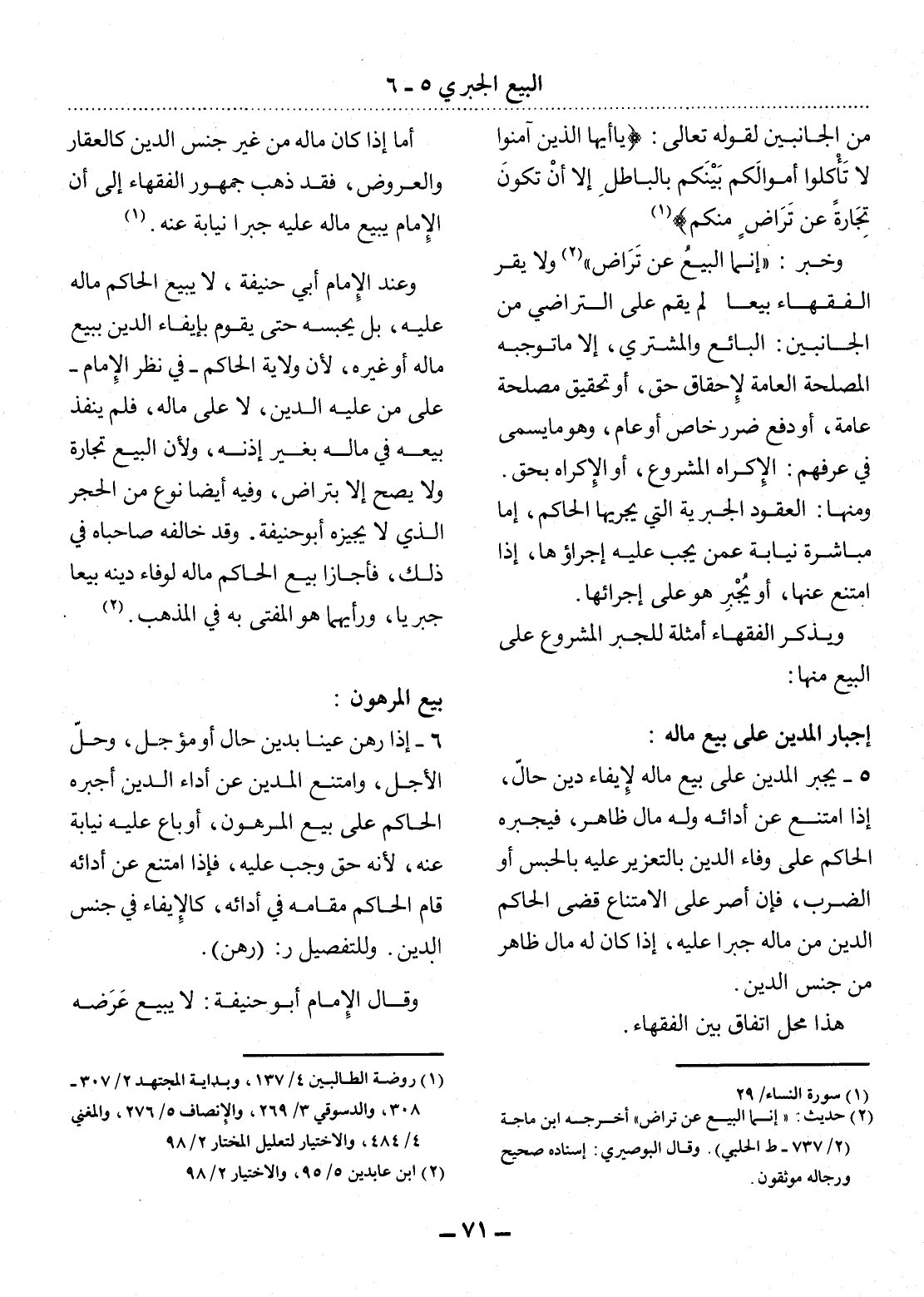 (2) حديث: " إنما البيع عن تراض " أخرجه ابن ماجه (2 / 737 - ط الحلبي) . وقال البوصيري: إسناده صحيح ورجاله موثقون.