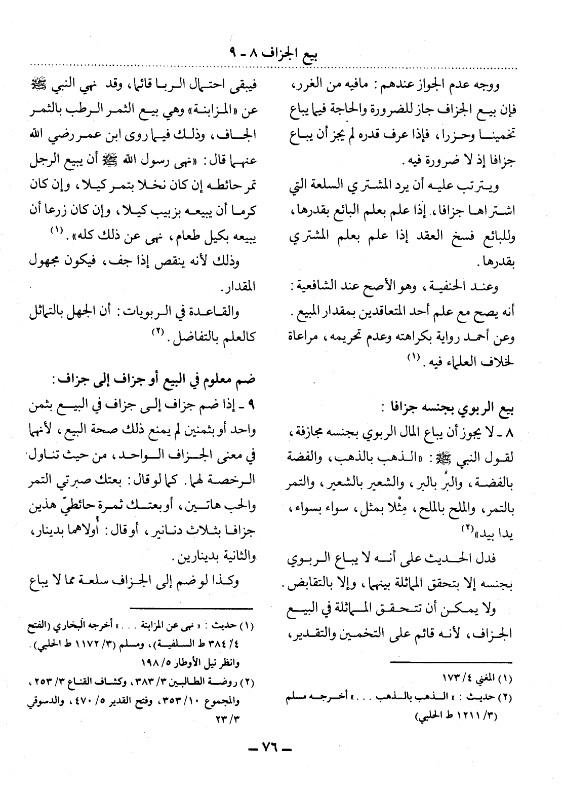 (1) حديث: " نهى عن المزابنة. . . " أخرجه البخاري (الفتح 4 / 384 ط السلفية) ، ومسلم (3 / 1172 ط الحلبي) وانظر نيل الأوطار 5 / 198