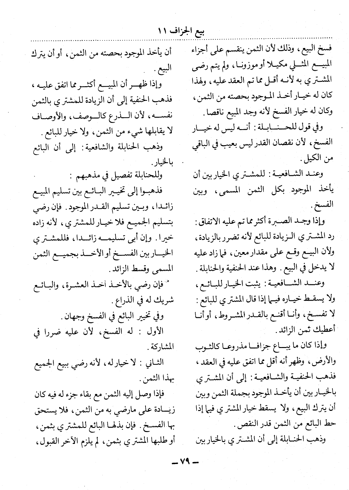 وَإِذَا كَانَ مَا يُبَاعُ جُزَافًا مَذْرُوعًا كَالثَّوْبِ وَالأَْرْضِ، وَظَهَرَ أَنَّهُ أَقَل مِمَّا اتُّفِقَ عَلَيْهِ فِي الْعَقْدِ، فَذَهَبَ الْحَنَفِيَّةُ وَالشَّافِعِيَّةُ: إِلَى أَنَّ الْمُشْتَرِيَ بِالْخِيَارِ بَيْنَ أَنْ يَأْخُذَ الْمَوْجُودَ بِجُمْلَةِ الثَّمَنِ وَبَيْنَ أَنْ يَتْرُكَ الْبَيْعَ، وَلاَ يَسْقُطُ خِيَارُ الْمُشْتَرِي فِيمَا إِذَا حَطَّ الْبَائِعُ مِنَ الثَّمَنِ قَدْرَ النَّقْصِ.