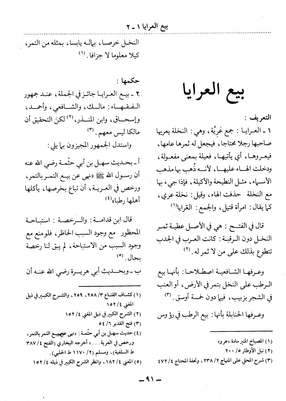(4) حديث سهل بن أبي حثْمة: " نهى عن بيع التمر بالتمر، ورخص في العرية. . . " أخرجه البخاري (الفتح 4 / 387 ط السلفية) ، ومسلم (2 / 1170 ط الحلبي)