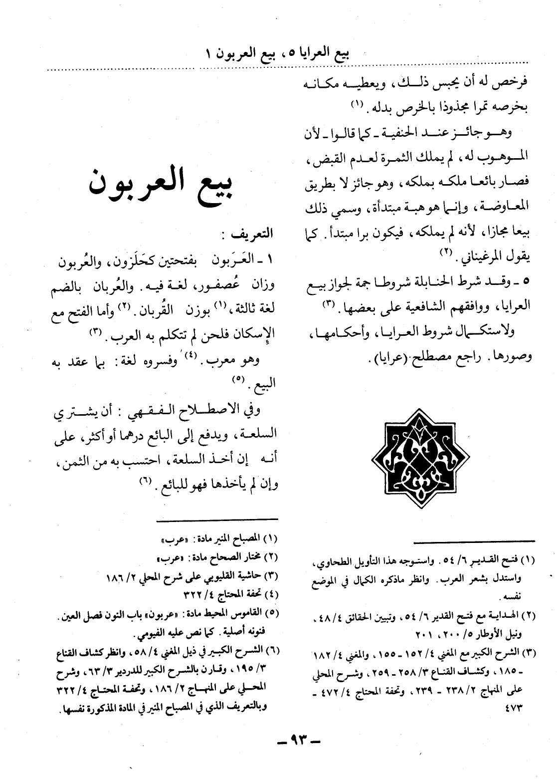 (5) القاموس المحيط مادة: " عربون " باب النون فصل العين. فنونه أصلية. كما نص عليه الفيومي