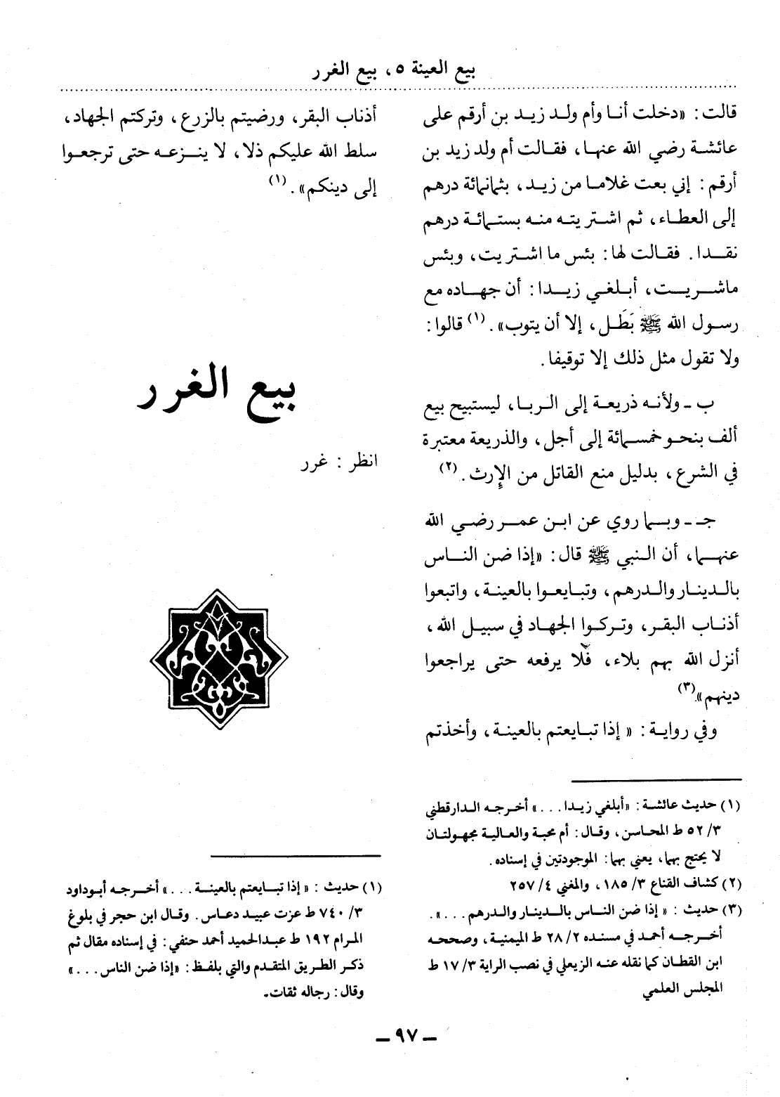 (1) حديث: " إذا تبايعتم بالعينة. . . " أخرجه أبو داود 3 / 740 ط عزت عبيد دعاس. وقال ابن حجر في بلوغ المرام 192 ط عبد الحميد أحمد حنفي: في إسناده مقال ثم ذكر الطريق المتقدم والتي بلفظ: " إذا ضن الناس. . . " وقال: رجاله ثقات