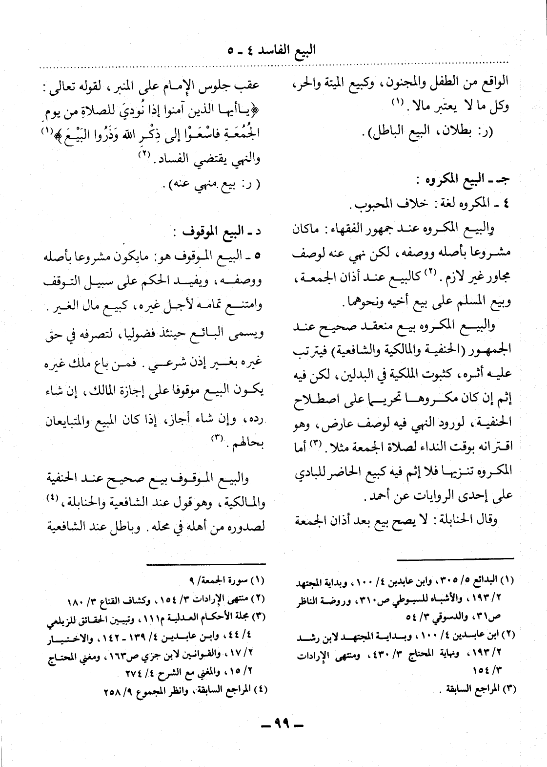 (2) ابن عابدين 4 / 100، وبداية المجتهد لابن رشد 2 / 193، ونهاية المحتاج 3 / 430، ومنتهى الإرادات 3 / 154
