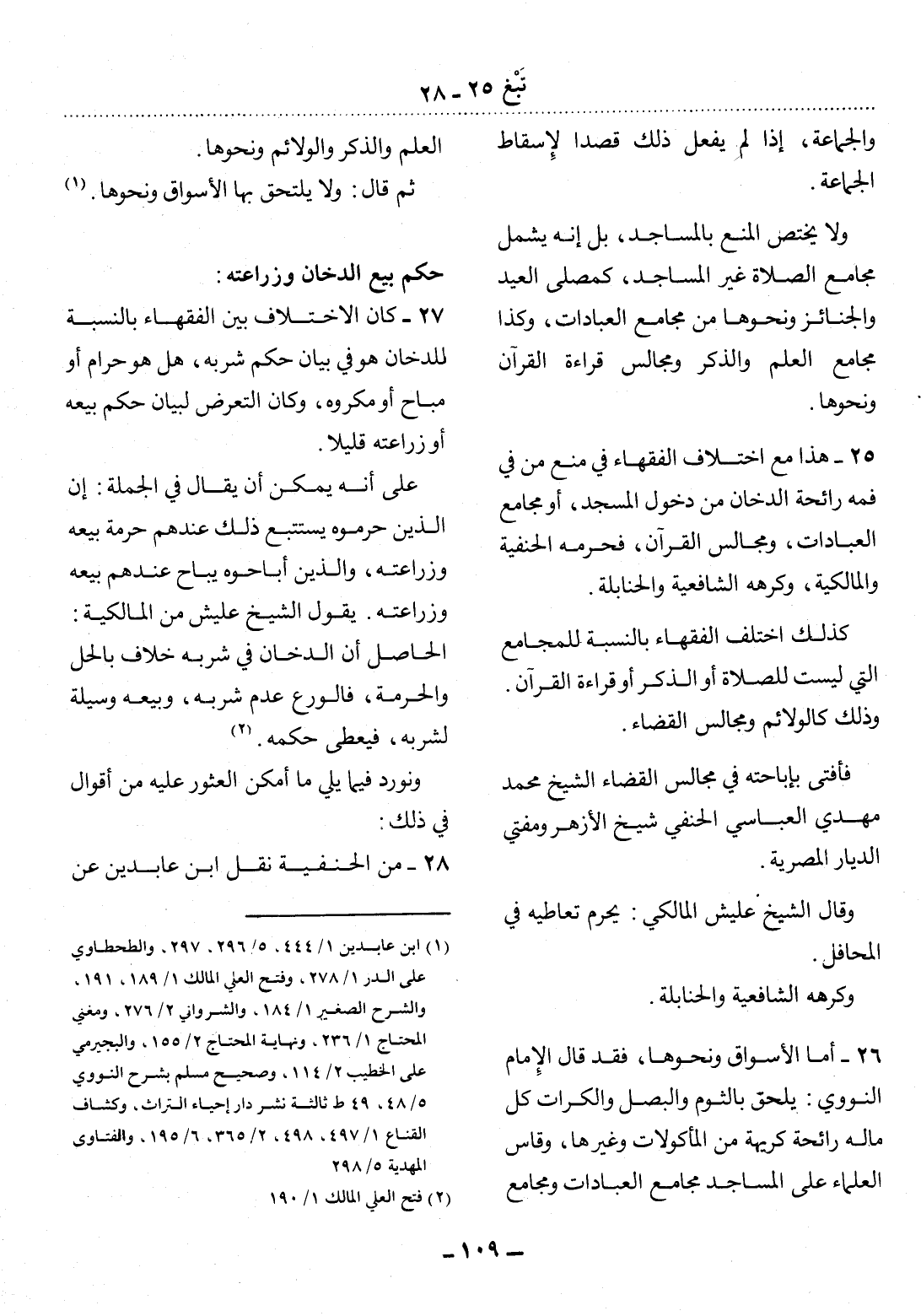 27 - كَانَ الاِخْتِلاَفُ بَيْنَ الْفُقَهَاءِ بِالنِّسْبَةِ لِلدُّخَانِ هُوَ فِي بَيَانِ حُكْمِ شُرْبِهِ، هَل هُوَ حَرَامٌ أَوْ مُبَاحٌ أَوْ مَكْرُوهٌ؟ ، وَكَانَ التَّعَرُّضُ لِبَيَانِ حُكْمِ بَيْعِهِ أَوْ زِرَاعَتِهِ قَلِيلاً.