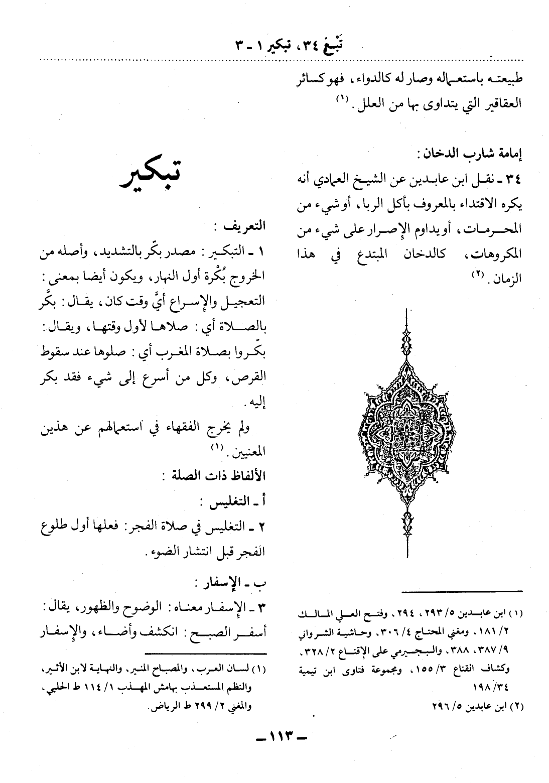 34 - نَقَل ابْنُ عَابِدِينَ عَنِ الشَّيْخِ الْعِمَادِيِّ أَنَّهُ يُكْرَهُ الاِقْتِدَاءُ بِالْمَعْرُوفِ بِأَكْل الرِّبَا، أَوْ شَيْءٍ مِنَ الْمُحَرَّمَاتِ، أَوْ يُدَاوِمُ الإِْصْرَارَ عَلَى شَيْءٍ مِنَ الْمَكْرُوهَاتِ، كَالدُّخَّانِ الْمُبْتَدَعِ فِي هَذَا الزَّمَانِ. (2)