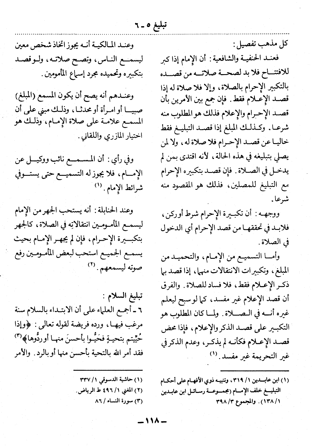 (1) ابن عابدين 1 / 319، وتنبيه ذوي الأفهام على أحكام التبليغ خلف الإمام (مجموعة رسائل ابن عابدين 1 / 138) . والمجموع 3 / 398.