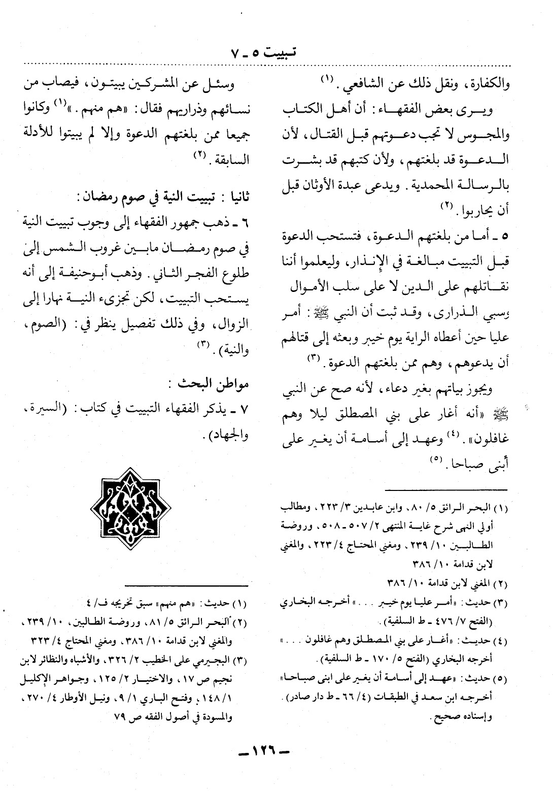 7 - يَذْكُرُ الْفُقَهَاءُ التَّبْيِيتَ فِي كِتَابِ: (السِّيرَةُ، وَالْجِهَادُ) .
