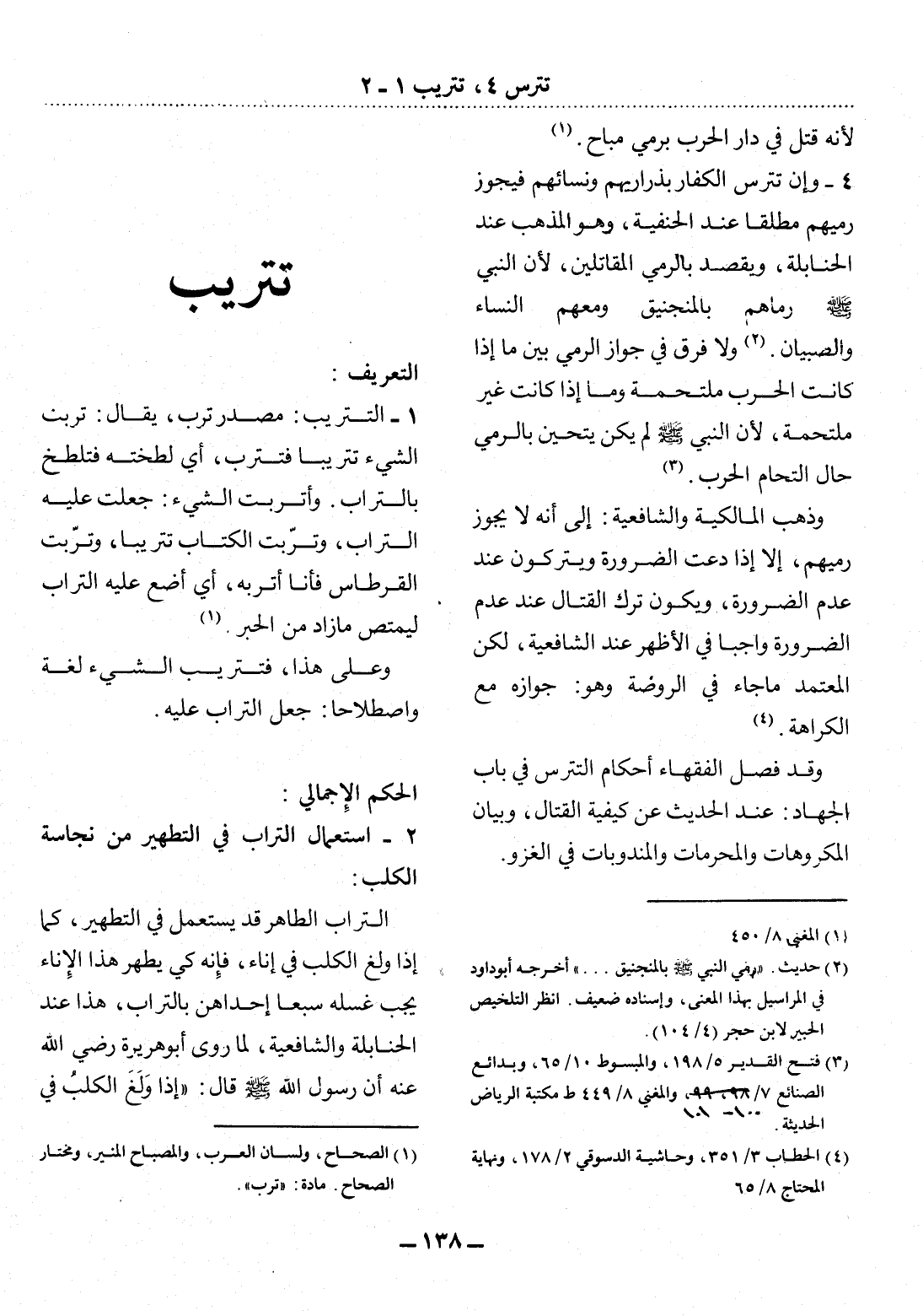 (4) الحطاب 3 / 351، وحاشية الدسوقي 2 / 178، ونهاية المحتاج 8 / 65.