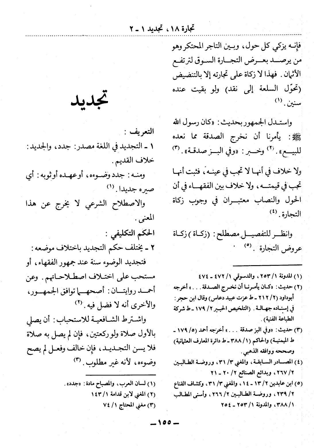 (5) ابن عابدين 2 / 13 - 14، والمغني 3 / 31، وكشاف القناع 2 / 239، وروضة الطالبين 2 / 266، وأسنى المطالب 1 / 388، والمدونة 1 / 253 - 254.