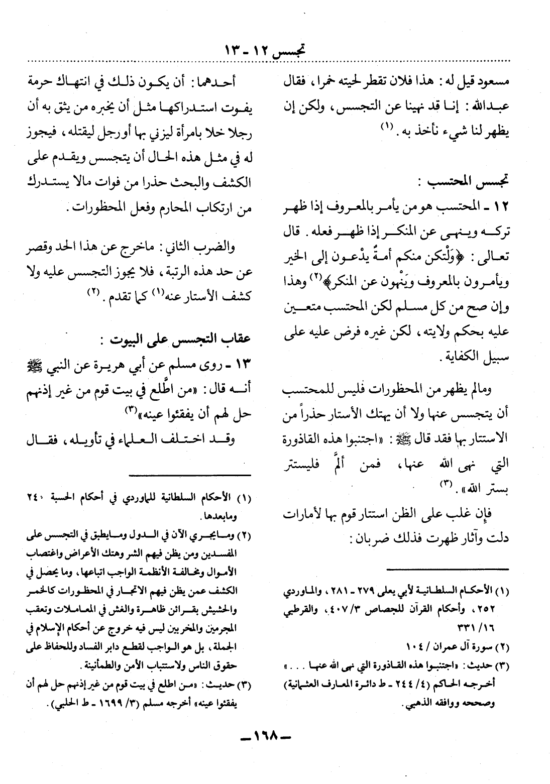 (1) الأحكام السلطانية للماوردي في أحكام الحسبة 240 وما بعدها.