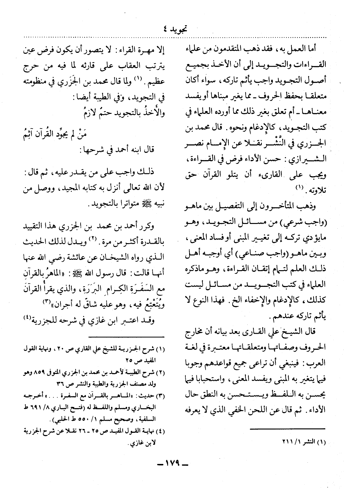 (4) نهاية القول المفيد ص 25 - 26 نقلا عن شرح الجزرية لابن غازي.