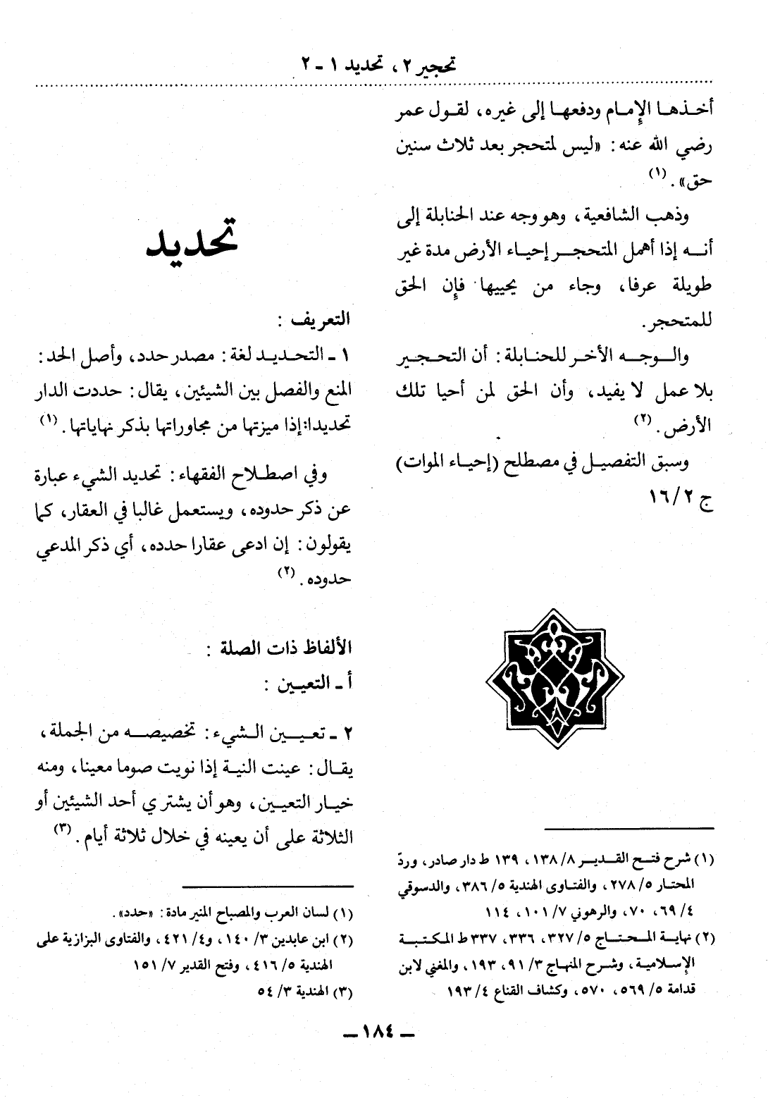 (1) لسان العرب والمصباح المنير مادة: " حدد ".