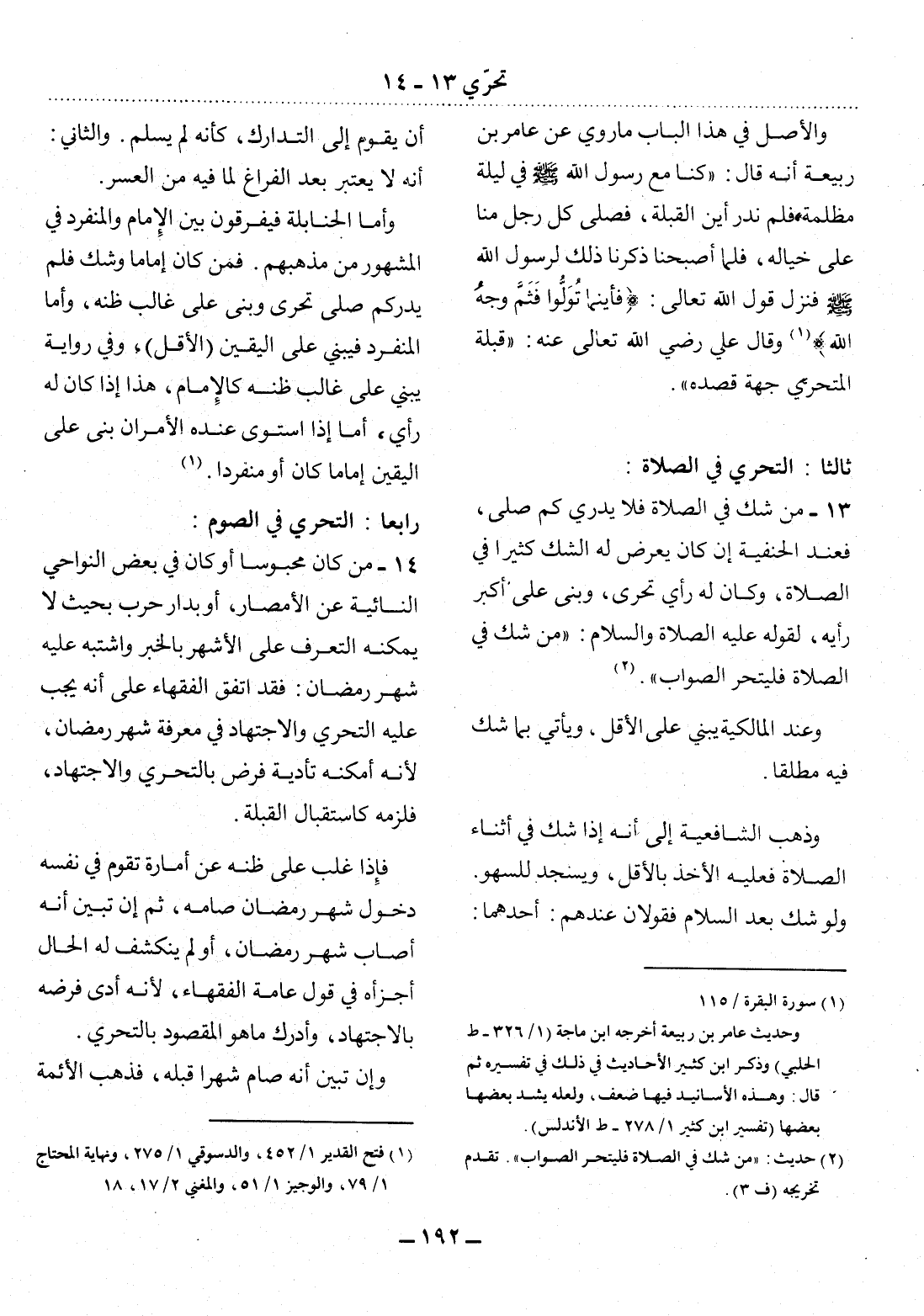 (1) سورة البقرة / 115. وحديث عامر بن ربيعة أخرجه ابن ماجه (1 / 326 - ط الحلبي) وذكر ابن كثير الأحاديث في ذلك في تفسيره ثم قال: وهذه الأسانيد فيها ضعف، ولعله يشد بعضها بعضها (تفسير ابن كثير 1 / 278 - ط الأندلس) .