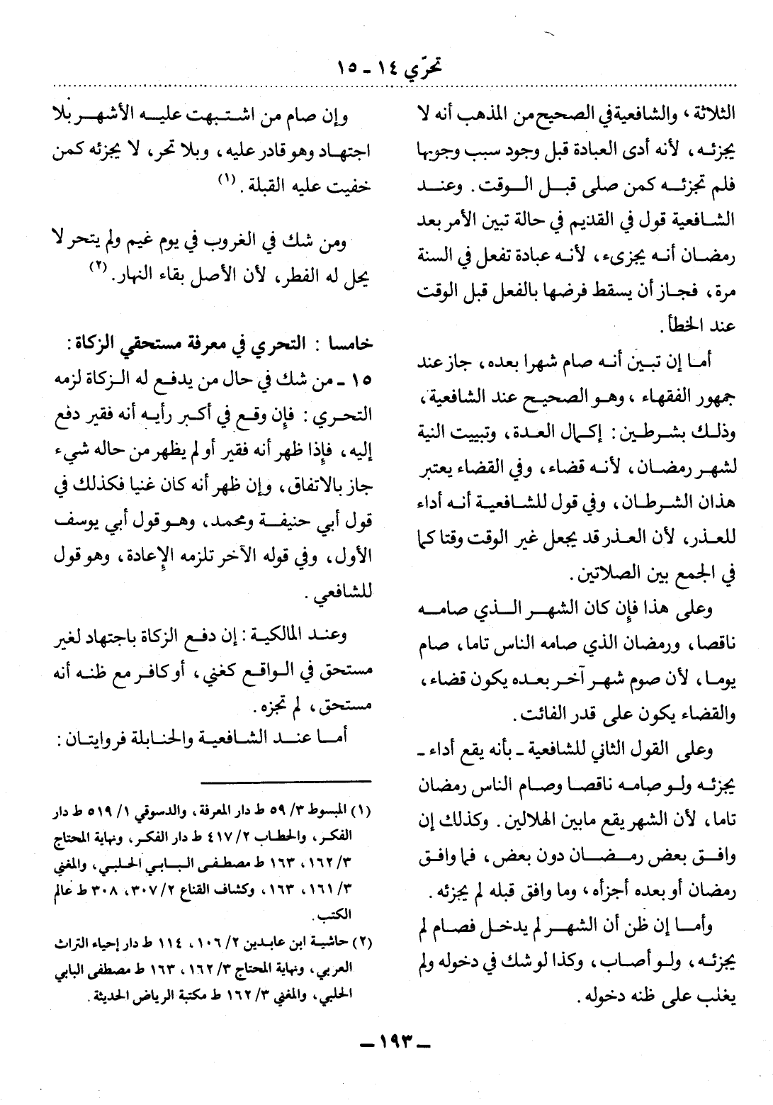 (2) حاشية ابن عابدين 2 / 106، 114 ط دار إحياء التراث العربي، ونهاية المحتاج 3 / 162، 163 ط مصطفى البابي الحلبي، والمغني 3 / 162 ط مكتبة الرياض الحديثة.