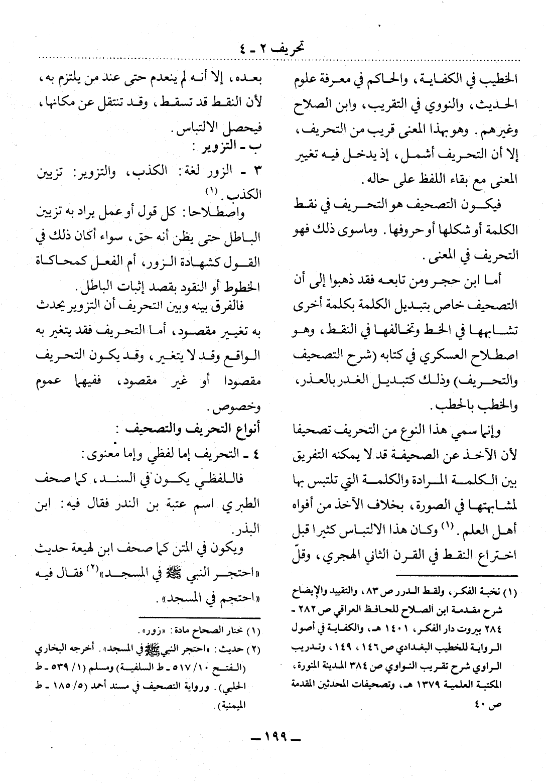 (1) نخبة الفكر، ولقط الدرر ص 83، والتقييد والإيضاح شرح مقدمة ابن الصلاح للحافظ العراقي ص 282 - 284 بيروت دار الفكر، 1401 هـ، والكفاية في أصول الرواية للخطيب البغدادي ص 146، 149، وتدريب الراوي شرح تقريب النواوي ص 384 المدينة المنورة، المكتبة العلمية 1379 هـ، وتصحيفات المحدثين المقدمة ص 40.