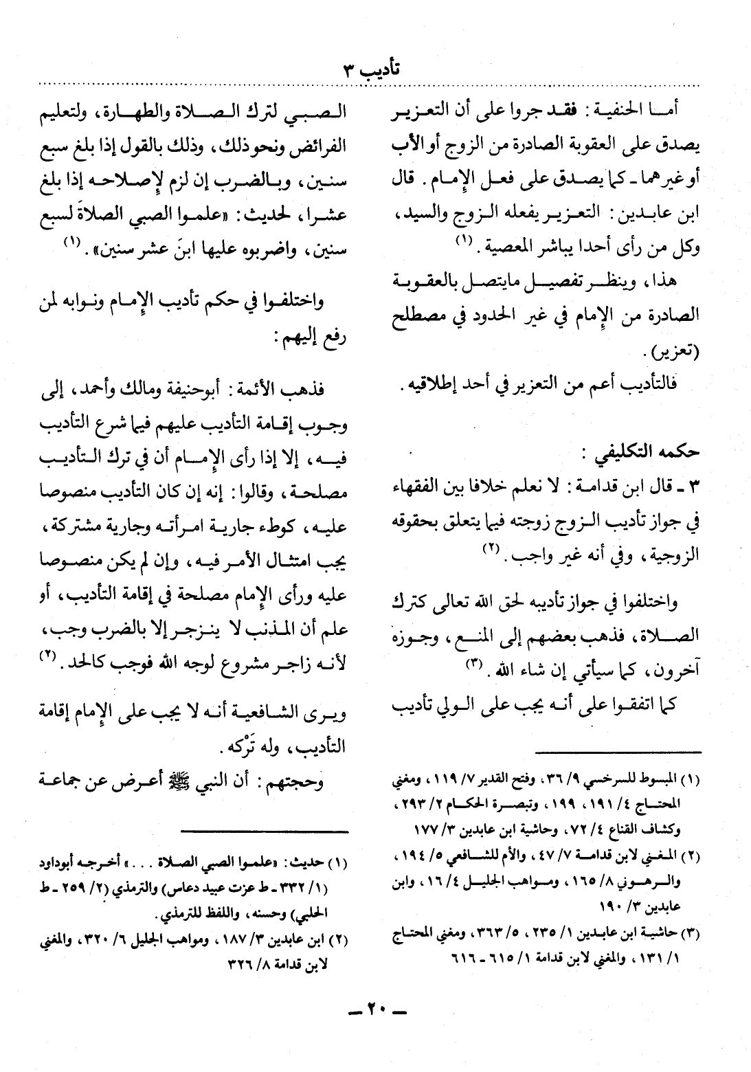 (1) حديث: " علموا الصبي الصلاة. . . " أخرجه أبو داود (1 / 332 - ط عزت عبيد دعاس) والترمذي (2 / 259 - ط الحلبي) وحسنه، واللفظ للترمذي.