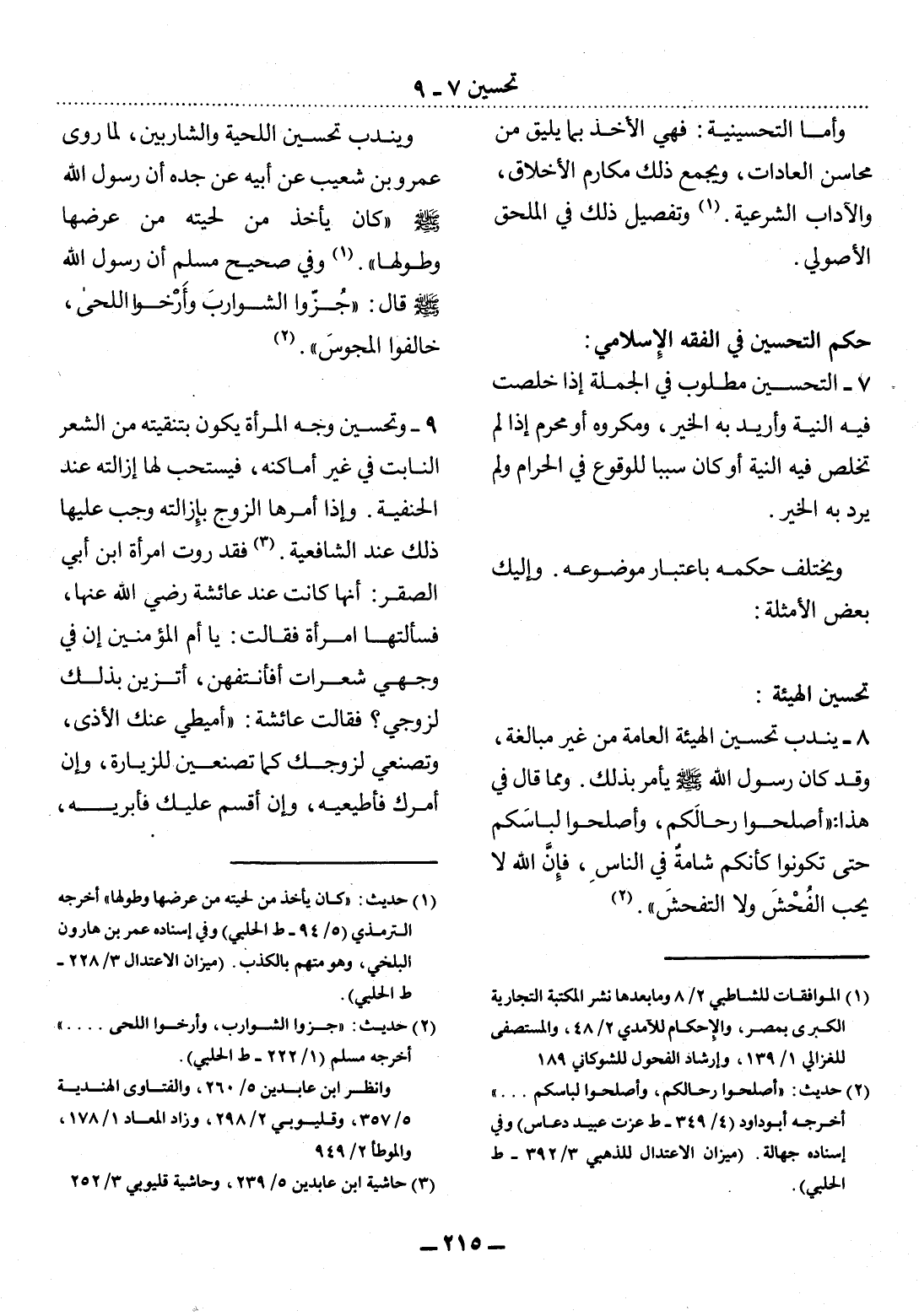 7 - التَّحْسِينُ مَطْلُوبٌ فِي الْجُمْلَةِ إِذَا خَلَصَتْ فِيهِ النِّيَّةُ وَأُرِيدَ بِهِ الْخَيْرُ، وَمَكْرُوهٌ أَوْ مُحَرَّمٌ إِذَا لَمْ تَخْلُصْ فِيهِ النِّيَّةُ أَوْ كَانَ سَبَبًا لِلْوُقُوعِ فِي الْحَرَامِ وَلَمْ يُرَدْ بِهِ الْخَيْرُ.