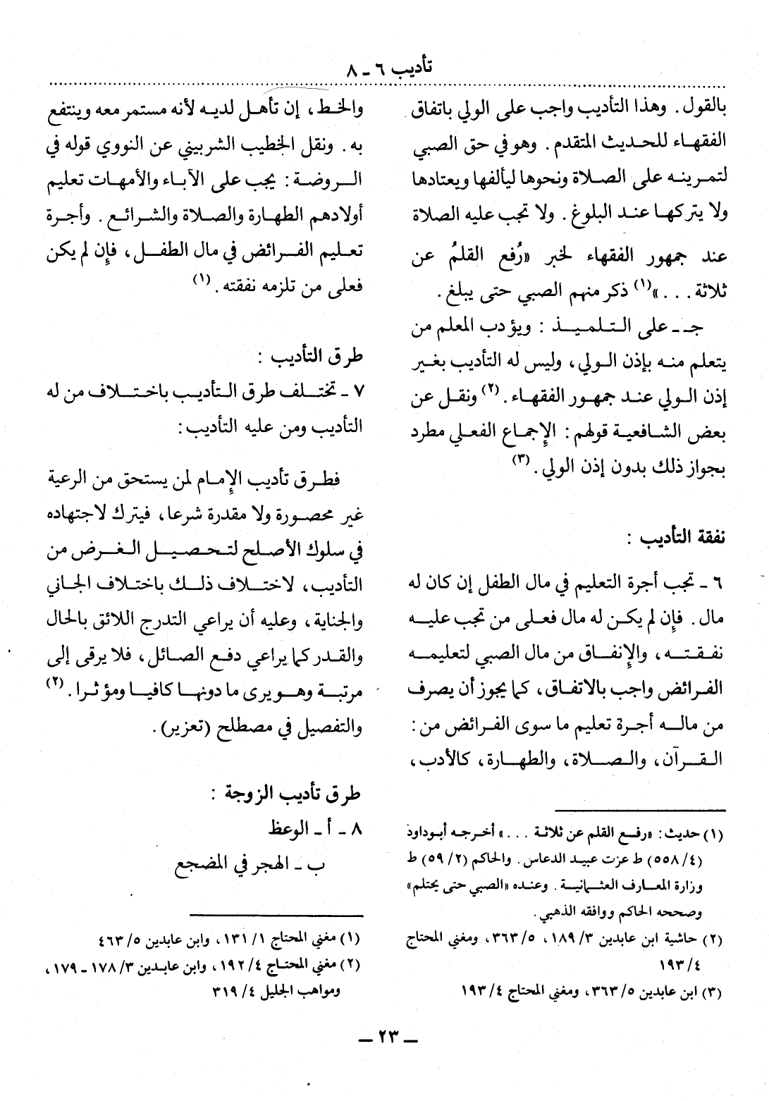 7 - تَخْتَلِفُ طُرُقُ التَّأْدِيبِ بِاخْتِلاَفِ مَنْ لَهُ التَّأْدِيبُ وَمَنْ عَلَيْهِ التَّأْدِيبُ:
