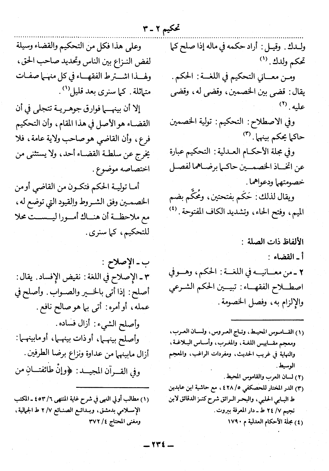 وَفِي مَجَلَّةِ الأَْحْكَامِ الْعَدْلِيَّةِ: التَّحْكِيمُ عِبَارَةٌ عَنِ اتِّخَاذِ الْخَصْمَيْنِ حَاكِمًا بِرِضَاهُمَا لِفَصْل خُصُومَتِهِمَا وَدَعْوَاهُمَا.