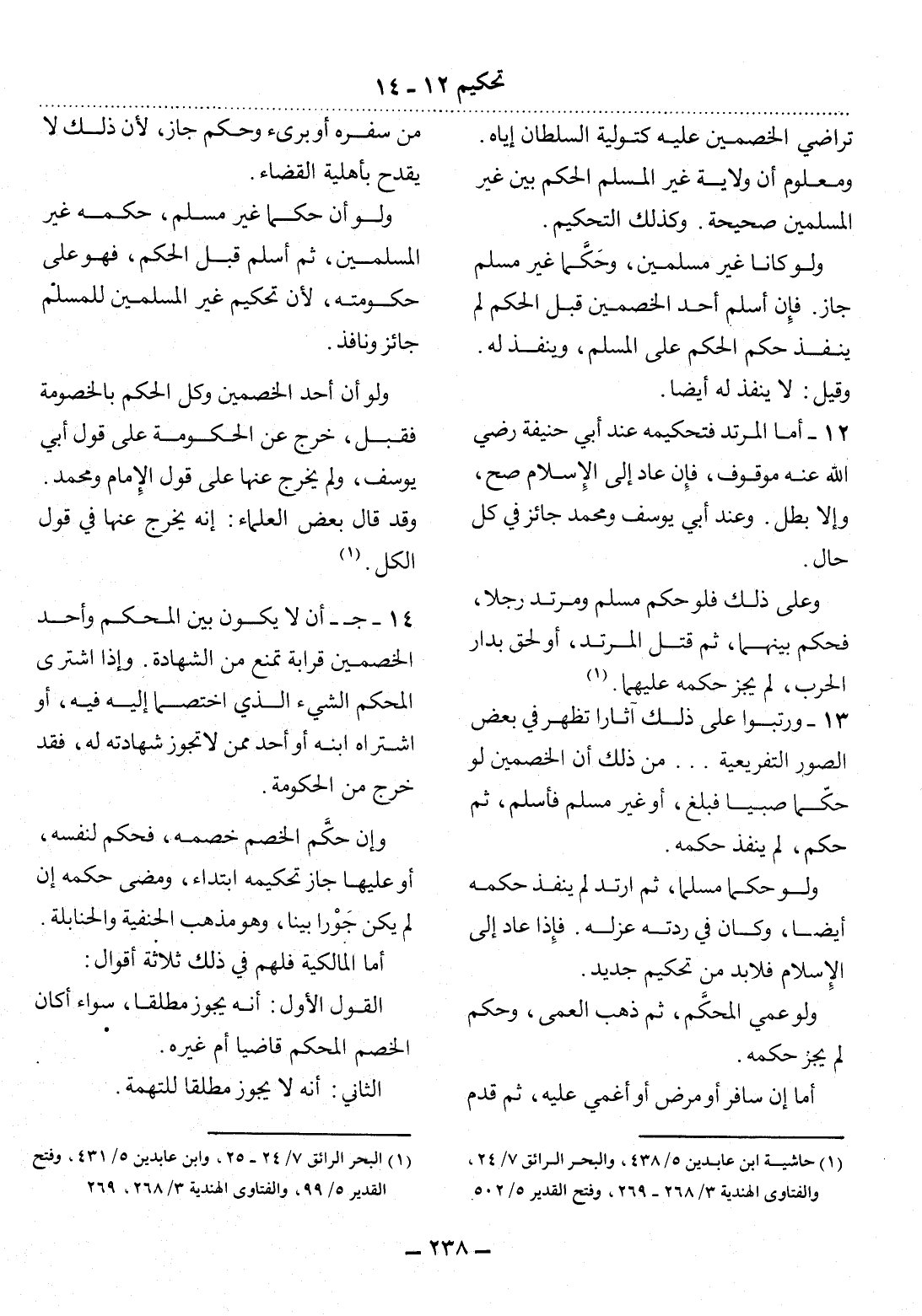 (1) حاشية ابن عابدين 5 / 438، والبحر الرائق 7 / 24، والفتاوى الهندية 3 / 268 - 269، وفتح القدير 5 / 502.