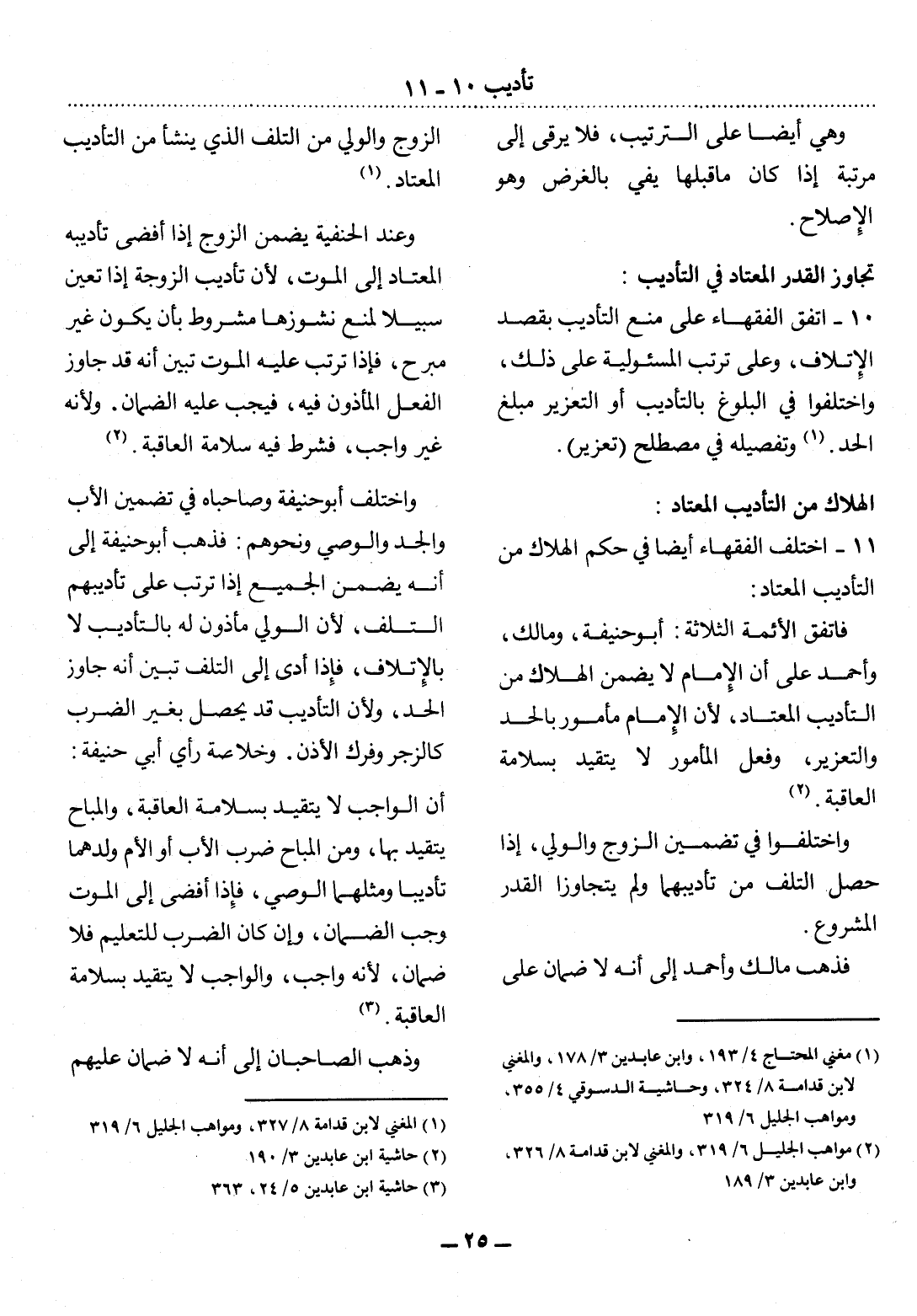 الزَّوْجِ وَالْوَلِيِّ مِنَ التَّلَفِ الَّذِي يَنْشَأُ مِنَ التَّأْدِيبِ الْمُعْتَادِ. (1)