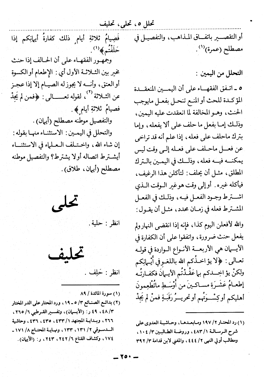 (2) بدائع الصنائع 3 / 5 - 19، ورد المحتار على الدر المختار 3 / 48، 49 ر: (الأيمان) ، وتفسير القرطبي 6 / 265، 266، وبداية المجتهد 1 / 433، 435، 436، وحاشية الدسوقي 2 / 131، 133، ونهاية المحتاج 8 / 171 - 174، وكشاف القناع 6 / 242، 243، ر: (الأيمان) .
