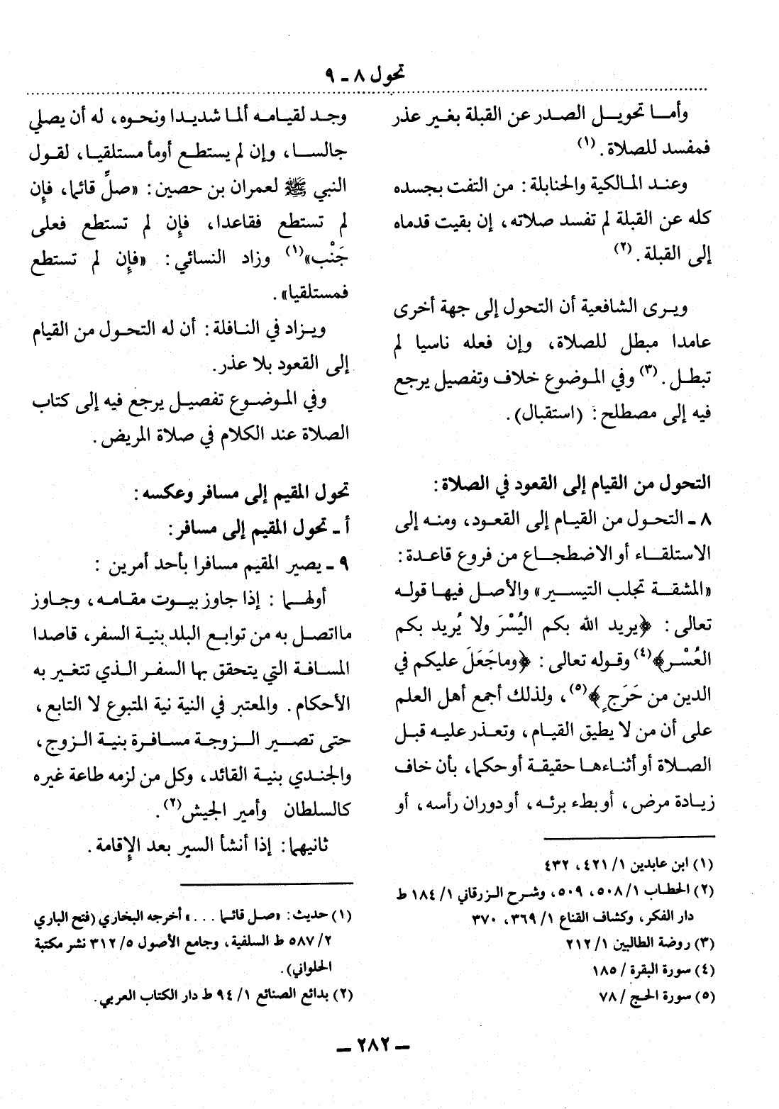 (2) الحطاب 1 / 508، 509، وشرح الزرقاني 1 / 184 ط دار الفكر، وكشاف القناع 1 / 369، 370.