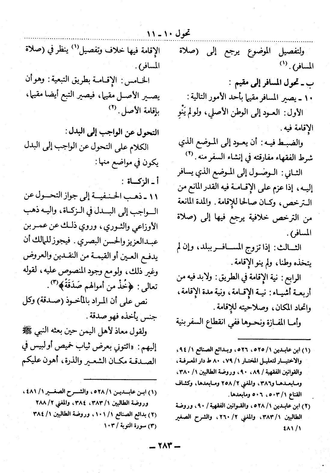 10 - يَصِيرُ الْمُسَافِرُ مُقِيمًا بِأَحَدِ الأُْمُورِ التَّالِيَةِ: