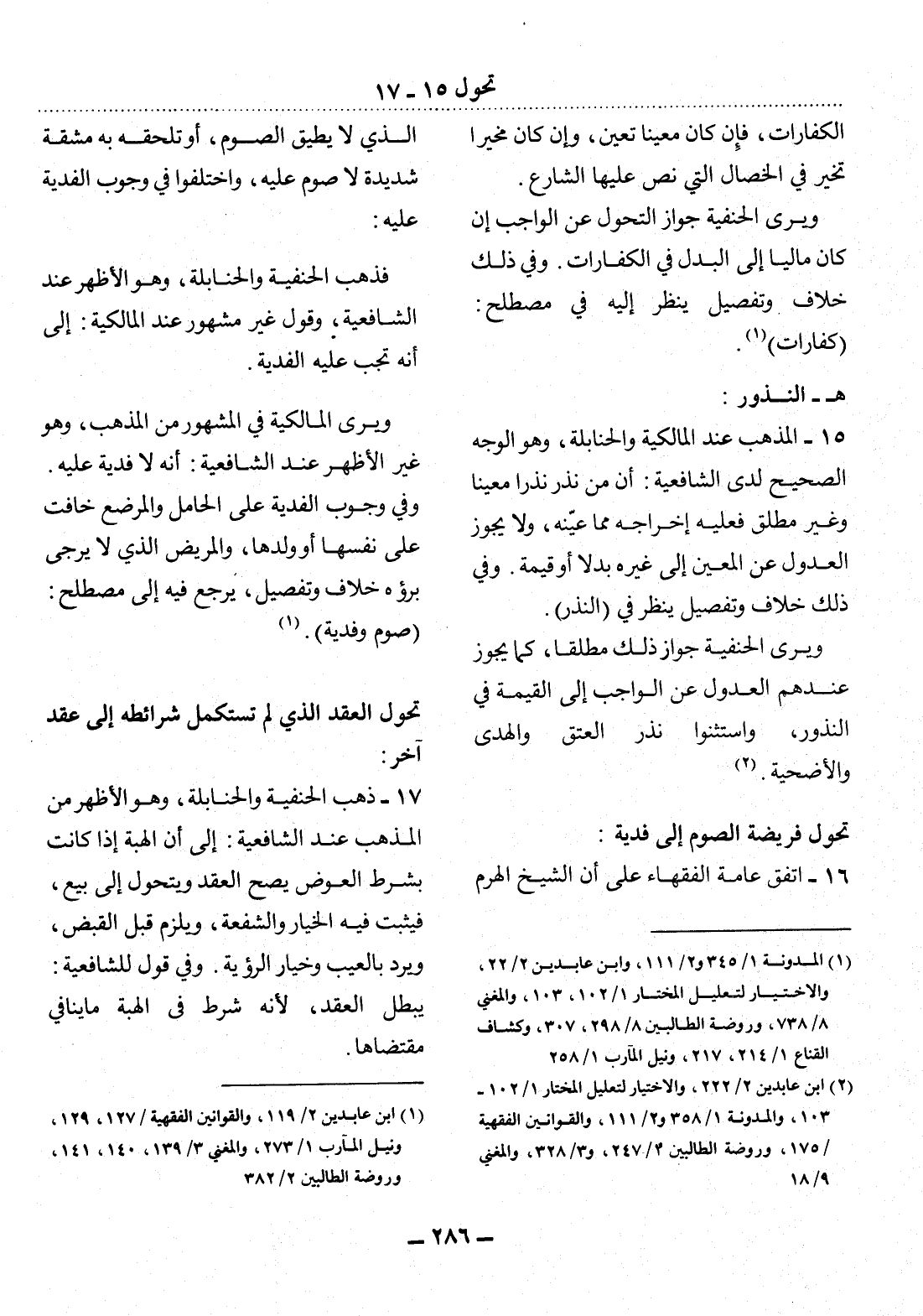 وَيَرَى الْحَنَفِيَّةُ جَوَازَ التَّحَوُّل عَنِ الْوَاجِبِ إِنْ كَانَ مَالِيًّا إِلَى الْبَدَل فِي الْكَفَّارَاتِ. وَفِي ذَلِكَ خِلاَفٌ وَتَفْصِيلٌ يُنْظَرُ إِلَيْهِ فِي مُصْطَلَحِ: (كَفَّارَاتٌ) . (1)