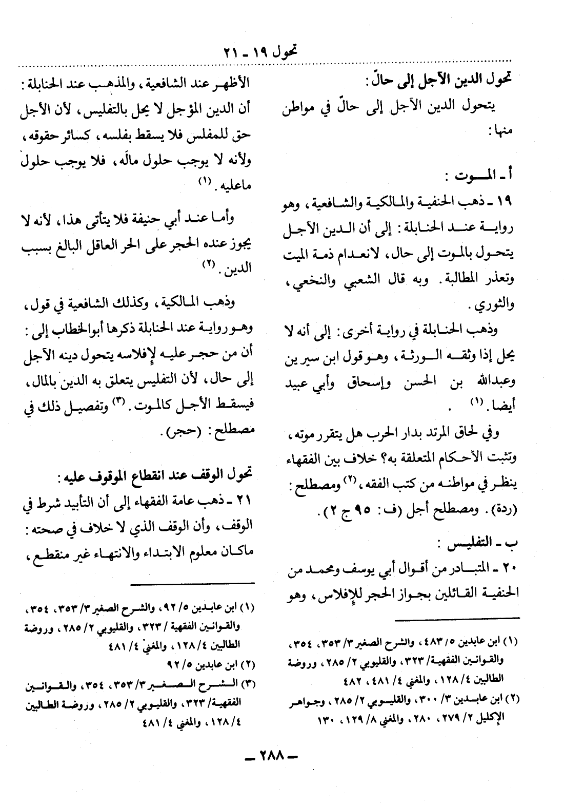 19 - ذَهَبَ الْحَنَفِيَّةُ وَالْمَالِكِيَّةُ وَالشَّافِعِيَّةُ، وَهُوَ رِوَايَةٌ عِنْدَ الْحَنَابِلَةِ: إِلَى أَنَّ الدَّيْنَ الآْجِل يَتَحَوَّل بِالْمَوْتِ إِلَى حَالٍّ، لاِنْعِدَامِ ذِمَّةِ الْمَيِّتِ وَتَعَذُّرِ الْمُطَالَبَةِ. وَبِهِ قَال الشَّعْبِيُّ وَالنَّخَعِيُّ، وَالثَّوْرِيُّ.