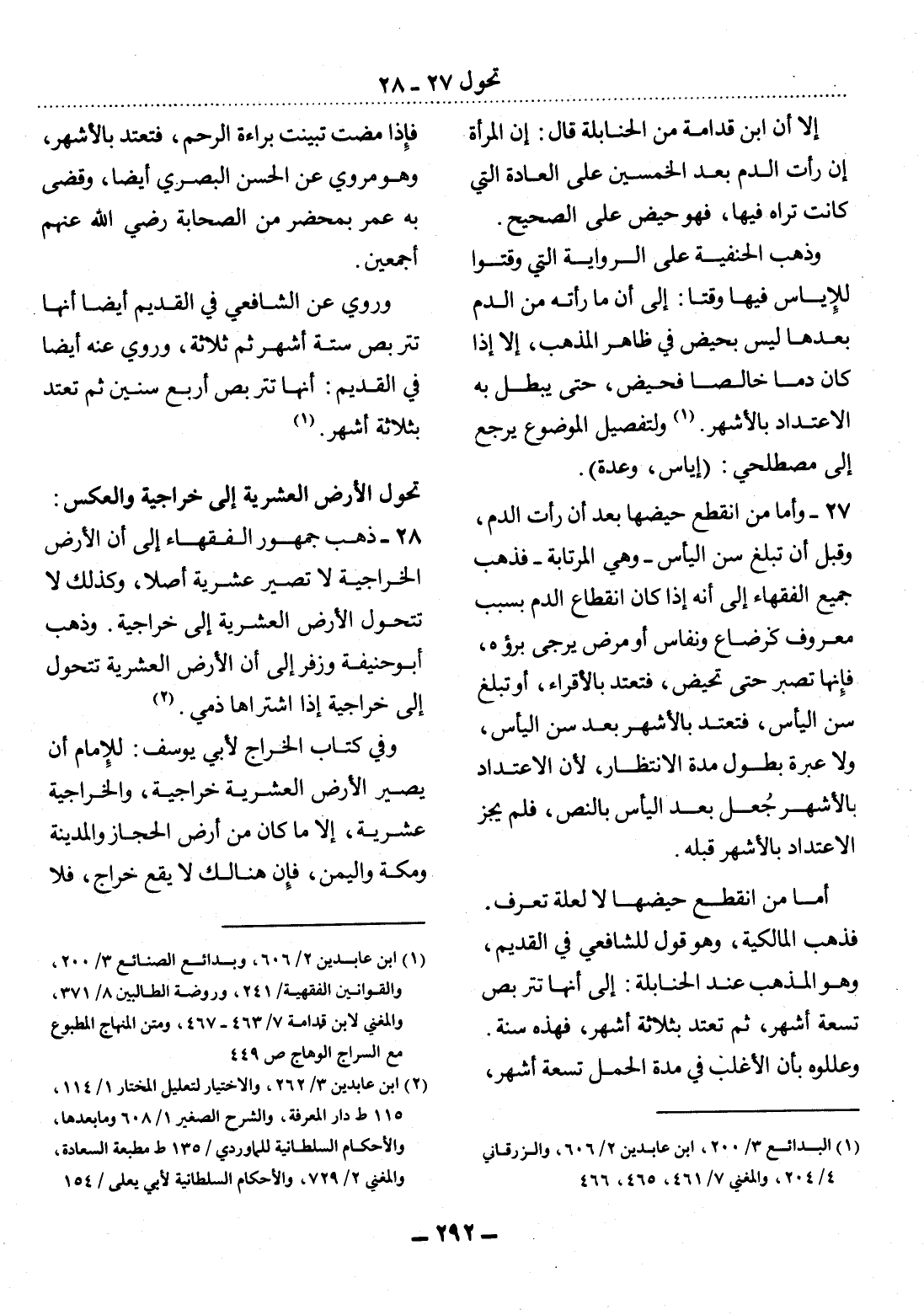 (1) ابن عابدين 2 / 606، وبدائع الصنائع 3 / 200، والقوانين الفقهية / 241، وروضة الطالبين 8 / 371، والمغني لابن قدامة 7 / 463 - 467، ومتن المنهاج المطبوع مع السراج الوهاج ص 449.