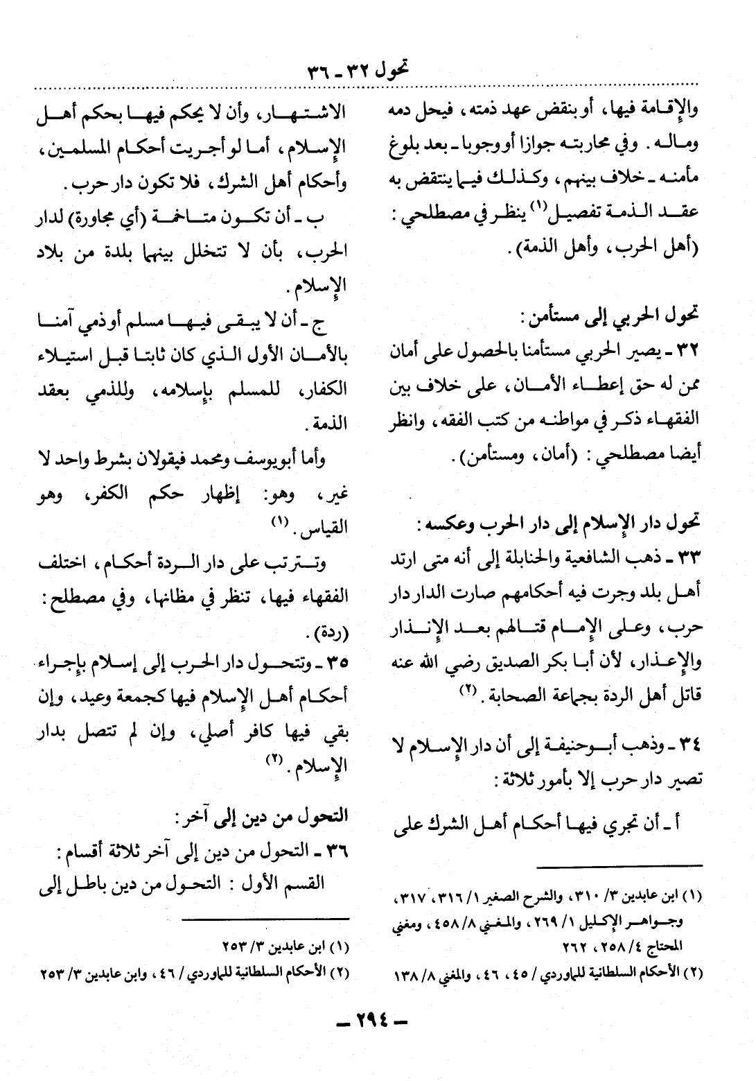 (2) الأحكام السلطانية للماوردي / 46، وابن عابدين 3 / 253.