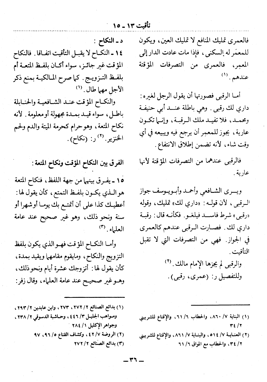 (2) العناية 7 / 514، والبناية 7 / 861، والإقناع للشربيني 2 / 34، والحطاب مع المواق 6 / 61.