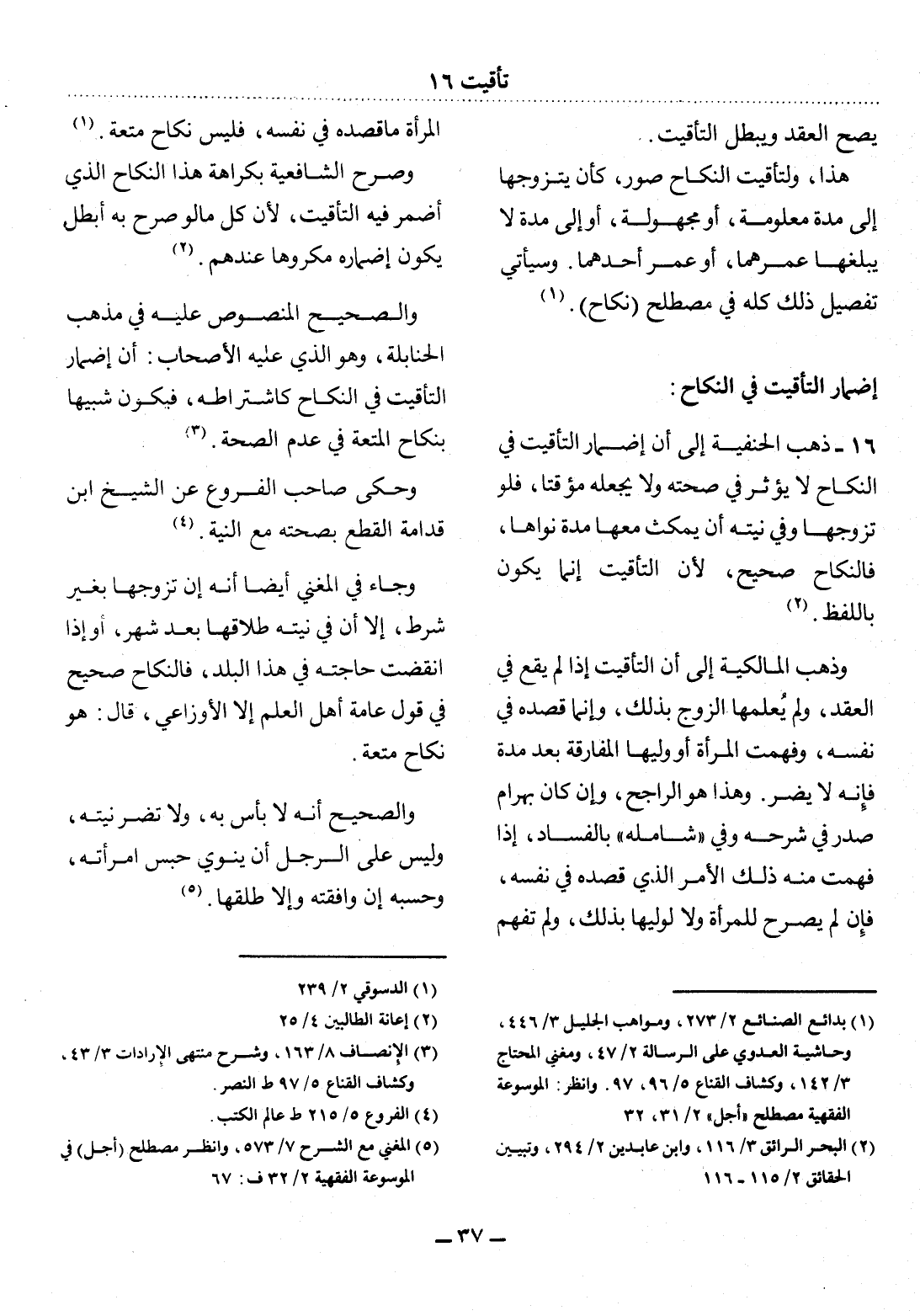 16 - ذَهَبَ الْحَنَفِيَّةُ إِلَى أَنَّ إِضْمَارَ التَّأْقِيتِ فِي النِّكَاحِ لاَ يُؤَثِّرُ فِي صِحَّتِهِ وَلاَ يَجْعَلُهُ مُؤَقَّتًا، فَلَهُ تَزَوُّجُهَا وَفِي نِيَّتِهِ أَنْ يَمْكُثَ مَعَهَا مُدَّةً نَوَاهَا، فَالنِّكَاحُ صَحِيحٌ؛ لأَِنَّ التَّأْقِيتَ إِنَّمَا يَكُونُ بِاللَّفْظِ. (2)