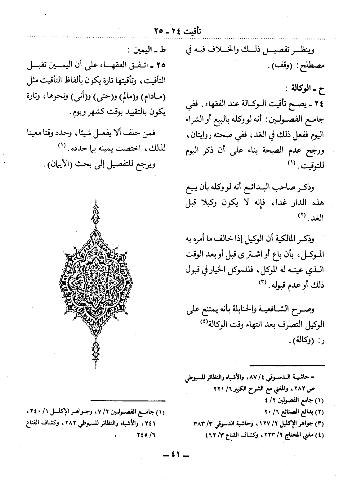 (1) جامع الفصولين 2 / 7، وجواهر الإكليل 1 / 240، 241، والأشباه والنظائر للسيوطي 282، وكشاف القناع 6 / 245.