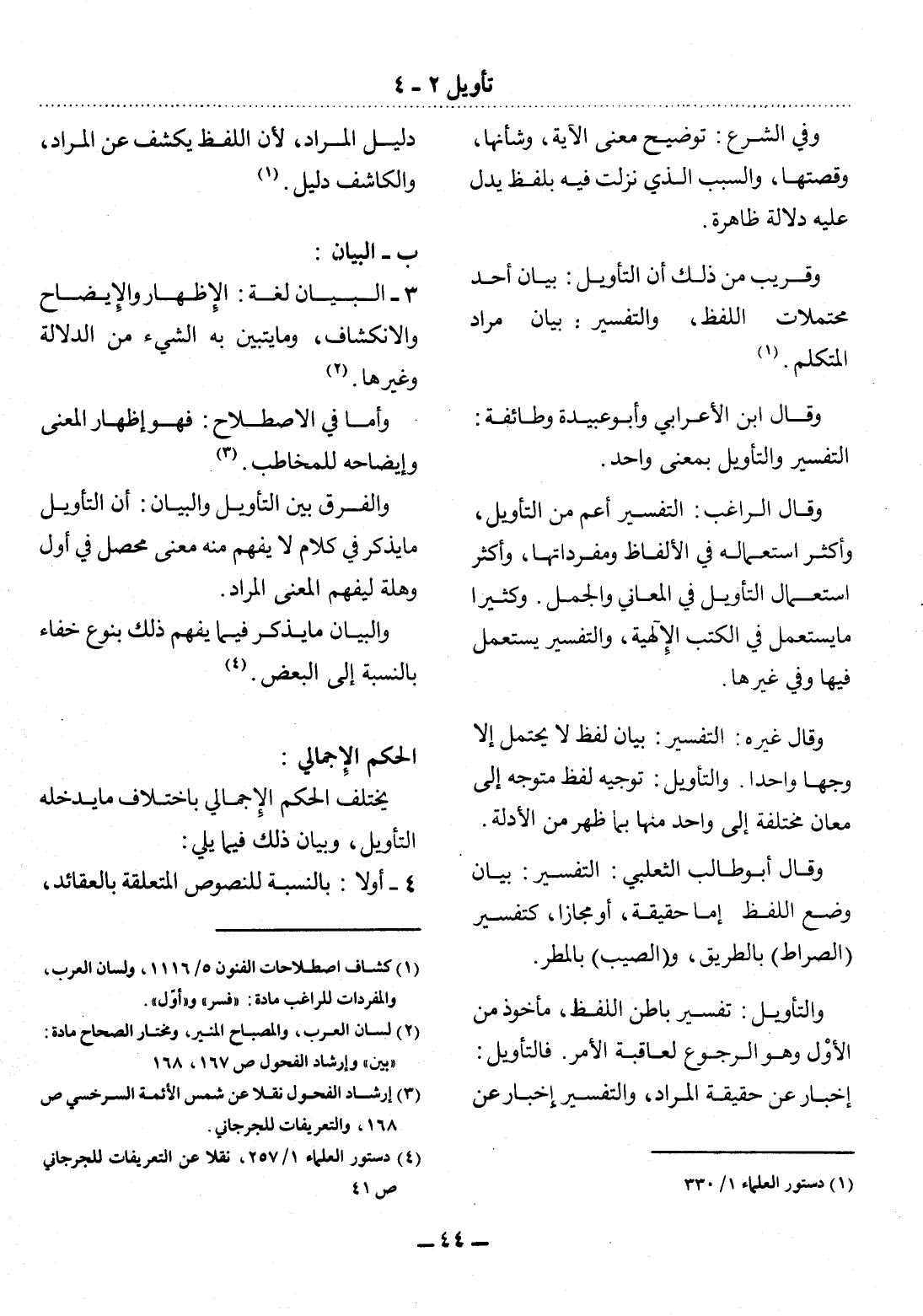 (4) دستور العلماء 1 / 257 نقلا عن التعريفات للجرجاني ص 41.