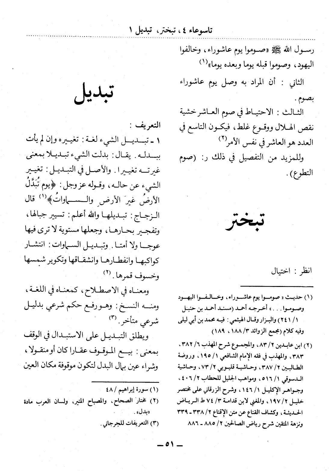 (2) مختار الصحاح، والمصباح المنير، ولسان العرب مادة " بدل ".