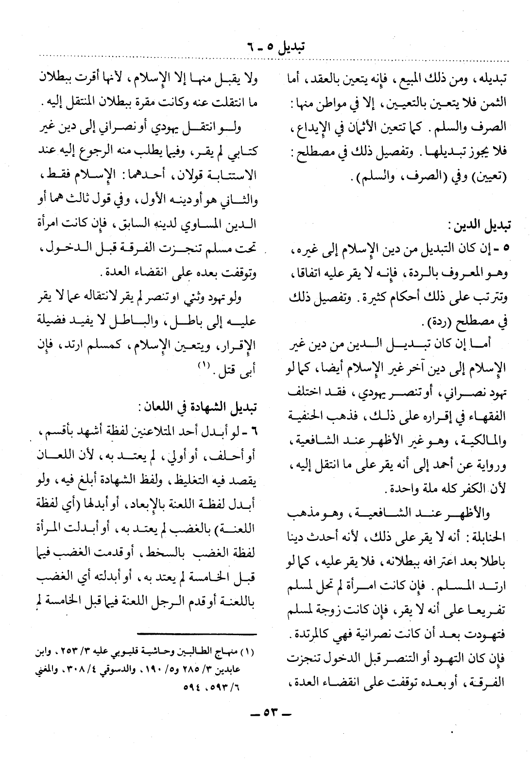 (1) منهاج الطالبين وحاشية قليوبي عليه 3 / 253، وابن عابدين 3 / 285 و5 / 190، والدسوقي 4 / 308، والمغني 6 / 593، 594.