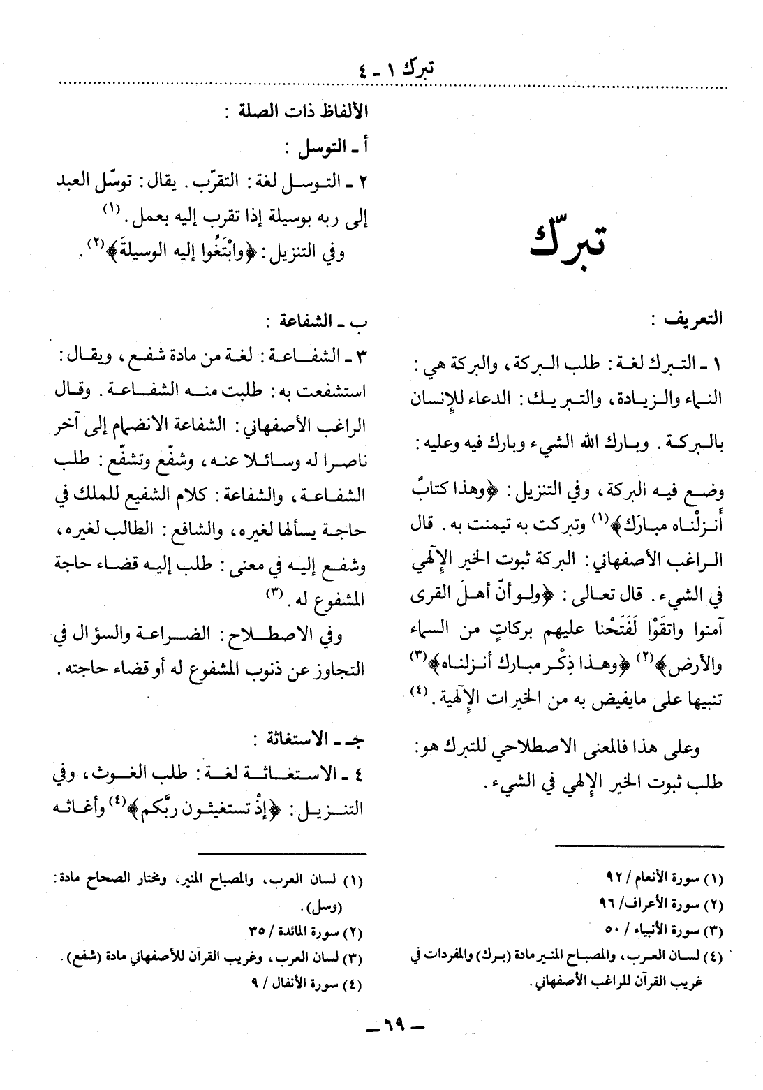 (4) لسان العرب، والمصباح المنير مادة (برك) والمفردات في غريب القرآن للراغب الأصفهاني.