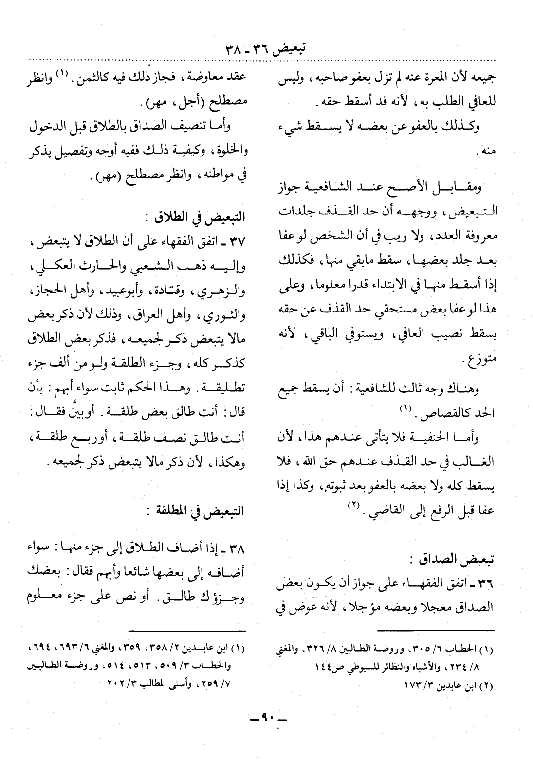 (1) الحطاب 6 / 305، وروضة الطالبين 8 / 326، والمغني 8 / 234، والأشباه والنظائر للسيوطي ص 144.